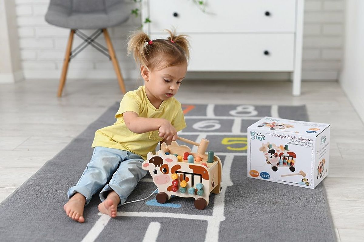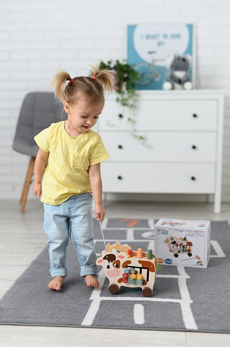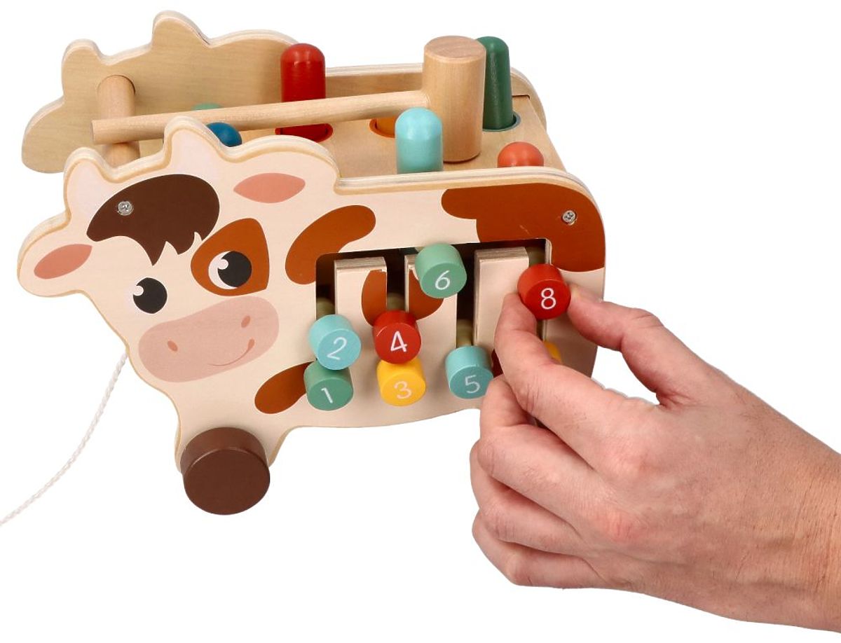 Prin joaca cu văcuța, copilul își dezvoltă curiozitatea naturală, învață gândirea creativă și își dezvoltă imaginația. Culorile frumoase și designul estetic al jucăriei influențează semnificativ percepția copilului, obișnuindu-l cu nuanțe noi. Văcuța dulce este o jucărie din lemn care nu doar distrează și educă, ci și place foarte mult copiilor.