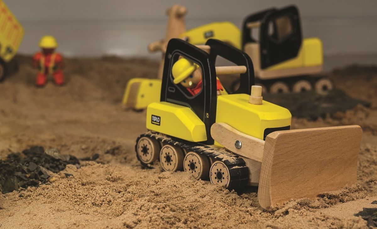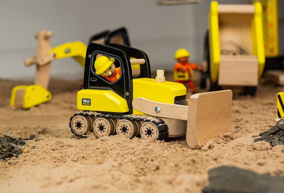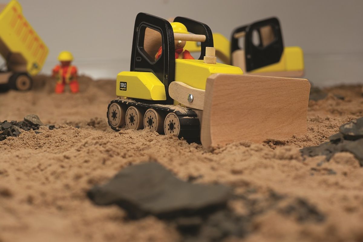 Această buldozer masivă și detaliată din lemn nu va avea probleme să îndepărteze orice din cale! Lama sa poate fi mișcată în sus și în jos și chiar are un sistem de tracțiune pe șenile, apropiindu-se astfel foarte mult de un vehicul real. Buldozerul are forme rotunjite și este proiectat astfel încât să fie ușor de prins de mâinile mici ale copiilor. Este deschis în partea de sus, permițând introducerea ușoară a figurinelor de constructori. Sprijină creativitatea și imaginația, dezvoltă coordonarea mână-ochi și motricitatea fină. Fabricat din materiale de calitate din surse responsabile. Conform standardului european de siguranță. Principalele caracteristici: ușor de prins, sprijină creativitatea și imaginația, introducere ușoară a figurinelor de constructori.