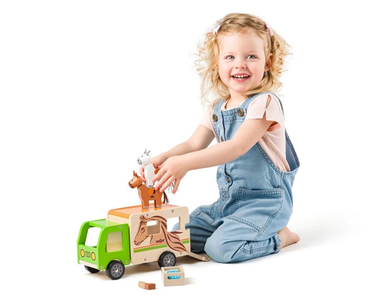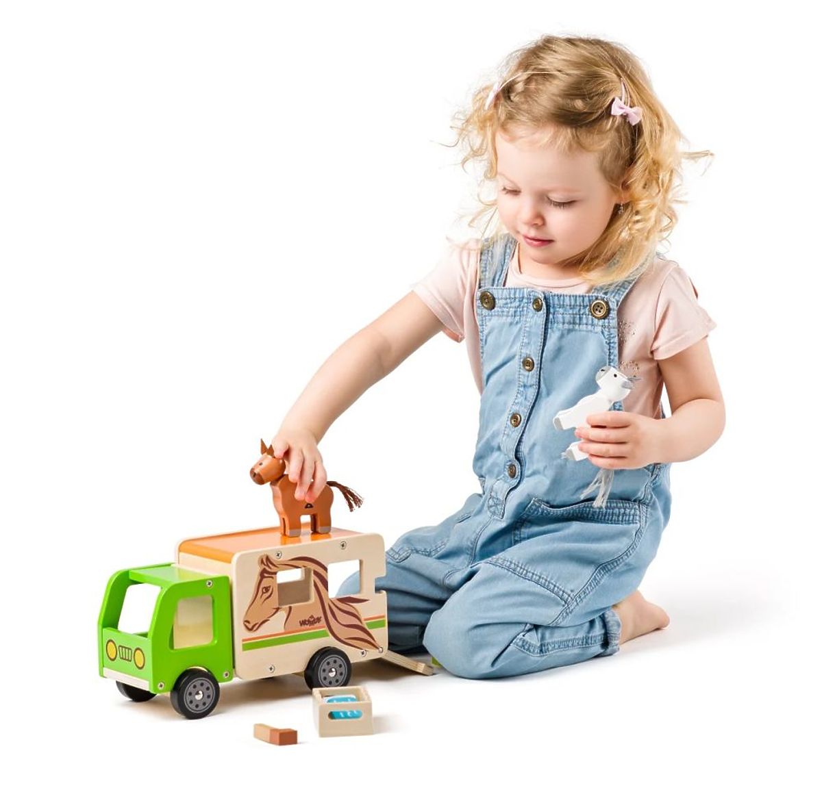 Banaby.ro   »   Jucării   /   Vehicule & mașinuțe   /   Camion din lemn pentru transportul cailor