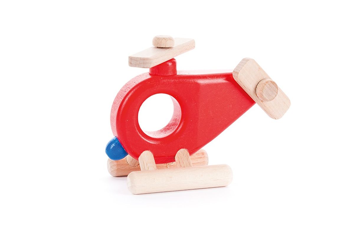 Elicopter roșu de pompieri din lemn, cu un geam care servește și ca mâner pentru mâna mică. Forma, curbura și dimensiunea corect aleasă a deschiderii permit copilului să descopere prinderea cu degetele și să recunoască formele. Fiecare mișcare a jucăriei, cum ar fi împingerea, rostogolirea, deplasarea pe curbele mobilierului sau desenarea liniilor în aer, ajută copilul să descopere spațiul și dinamica ascunsă în corp. Jocul cu acest elicopter dezvoltă astfel motricitatea grosieră. Iar elicele mobile îi încurajează pe copii să exerseze motricitatea fină. Recomandăm curățarea suprafeței jucăriei doar cu o cârpă umedă. Vă rugăm să nu expuneți această jucărie la temperaturi ridicate sau umiditate mare, deoarece lemnul se poate îndoi și deforma în aceste condiții. Îndeplinește toate normele europene de siguranță. Principalele caracteristici: fabricat din resurse naturale, ușor de reciclat, design Wojciech Bajor, potrivit pentru prinderea cu mâna mică, dezvoltă motricitatea grosieră și fină.