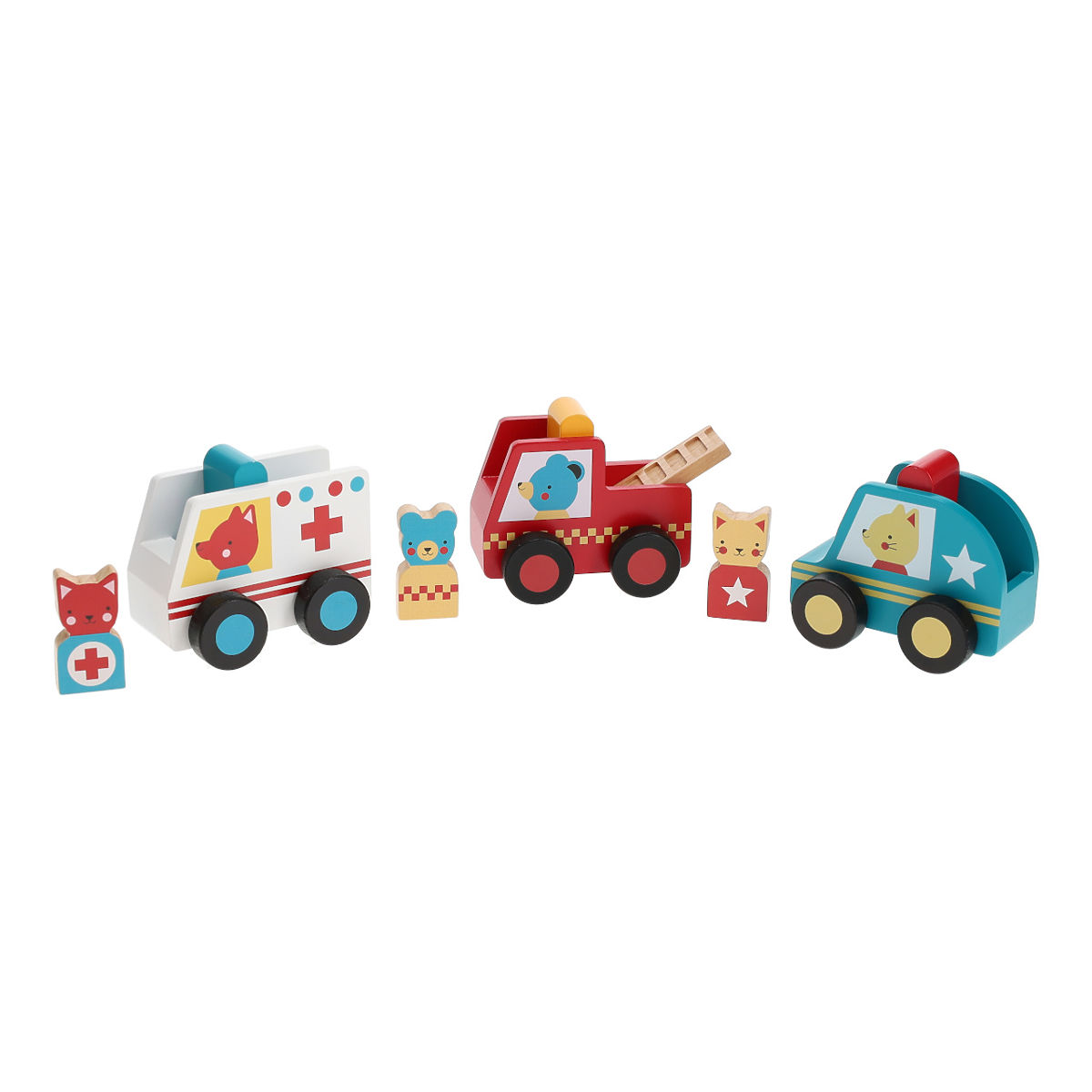 Set de mașini de salvare cu figurine din lemn 100% FSC®. .. mai mult