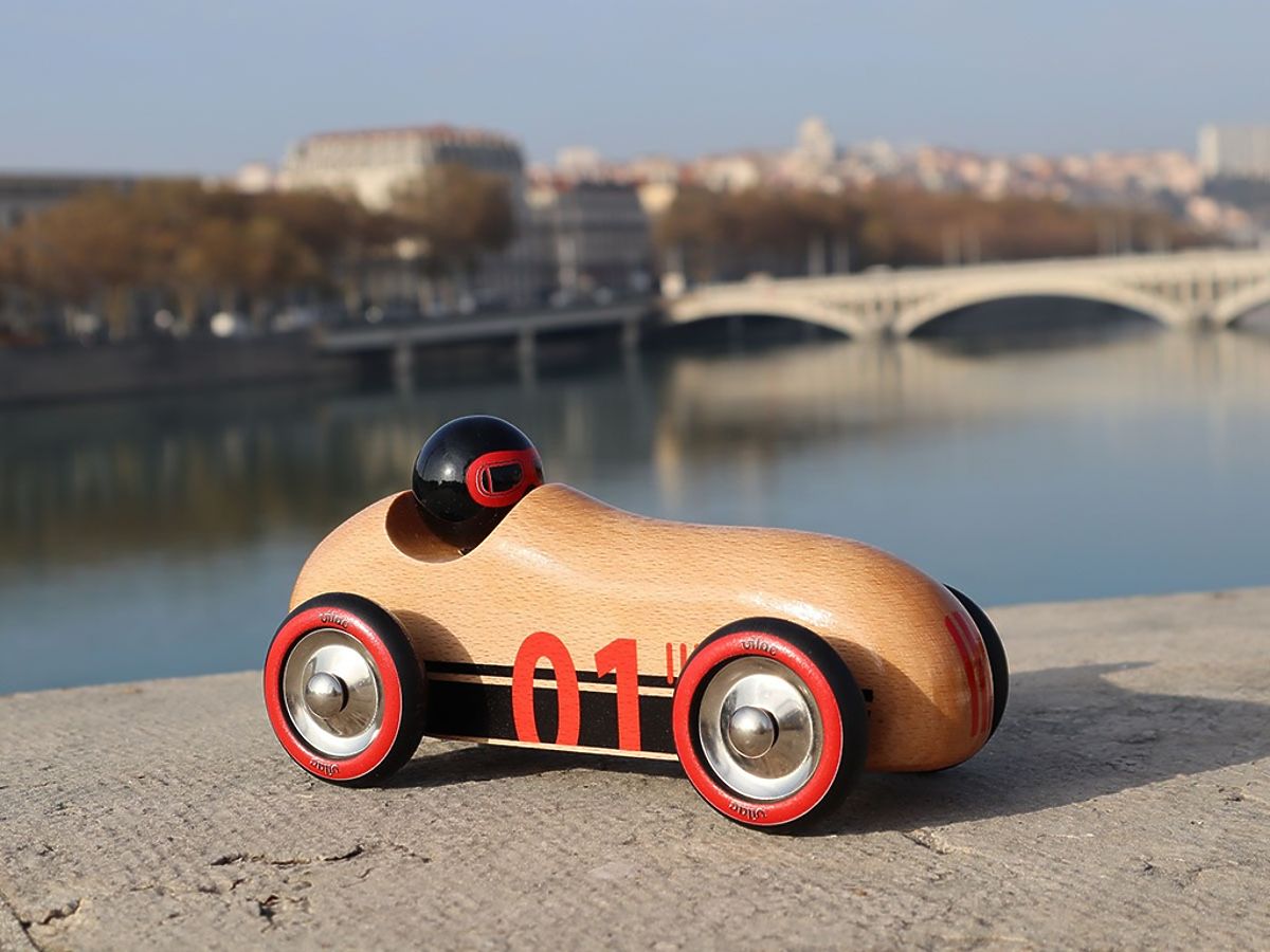 O mașinuță neobișnuită cu forme aerodinamice rotunjite și un design unic, destinată atât jocului, cât și ca un accesoriu atractiv pentru interior sau piesă de colecție. În timpul jocului cu mașinuța, copilul folosește multe abilități: motricitate fină, dexteritate, imaginație, creativitate. Poate reproduce sunete de motor sau sirene, parca în garaj, sau se poate plimba. Jucându-se cu alți copii sau membri ai familiei, învață să împartă, să colaboreze și să imite, dezvoltând astfel abilități sociale importante. Mașinuța este realizată din lemn masiv de fag, lăcuită manual cu vopsele sigure printr-un proces tradițional de imersie în baie de culoare. Fabricată în Franța, livrată într-o cutie imprimată. Principalele caracteristici: dezvoltă motricitatea fină și susține prinderea corectă, design și execuție unică, din lemn masiv de fag, lăcuire manuală unică, ambalată într-o cutie atractivă, potrivită ca cadou, piesă de colecție sau accesoriu de interior, fabricată în Franța.