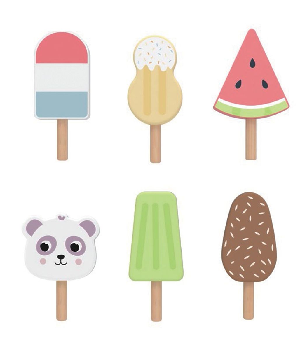 Ce căldură! Ce-ar fi să savurați ceva rece? Alegeți dintre șase tipuri diferite de înghețată pe băț. Preferi ciocolată, vanilie sau poate pepene verde? Setul de înghețată pe băț, cu suport practic, va deveni un accesoriu indispensabil în orice bucătărie de jucărie. Jocul de rol dezvoltă abilitățile de comunicare ale copiilor, vocabularul și imaginația. Jucăria este realizată din lemn de calitate certificată FSC. Principalele caracteristici: suport cu 6 înghețate pe băț, dezvoltă abilitățile de comunicare, stimulează jocul imaginativ, realizat din lemn certificat FSC®, potrivit pentru copii de la 2 ani. Marca și certificatul FSC® (Forest Stewardship Council) garantează că lemnul din care a fost realizat produsul nu a fost exploatat ilegal și provine din păduri gestionate într-un mod ecologic sau apropiat de natură, în care sunt respectate cerințe stricte de mediu și sociale. Marca FSC® pe produs înseamnă că prin achiziția dumneavoastră ajutați la protejarea pădurilor și sprijiniți gestionarea ecologică, responsabilă sau apropiată de natură, datorită căreia pădurile noastre sunt mai stabile, mai sănătoase, au o compoziție naturală a speciilor și rezistă mai bine efectelor negative ale schimbărilor climatice.