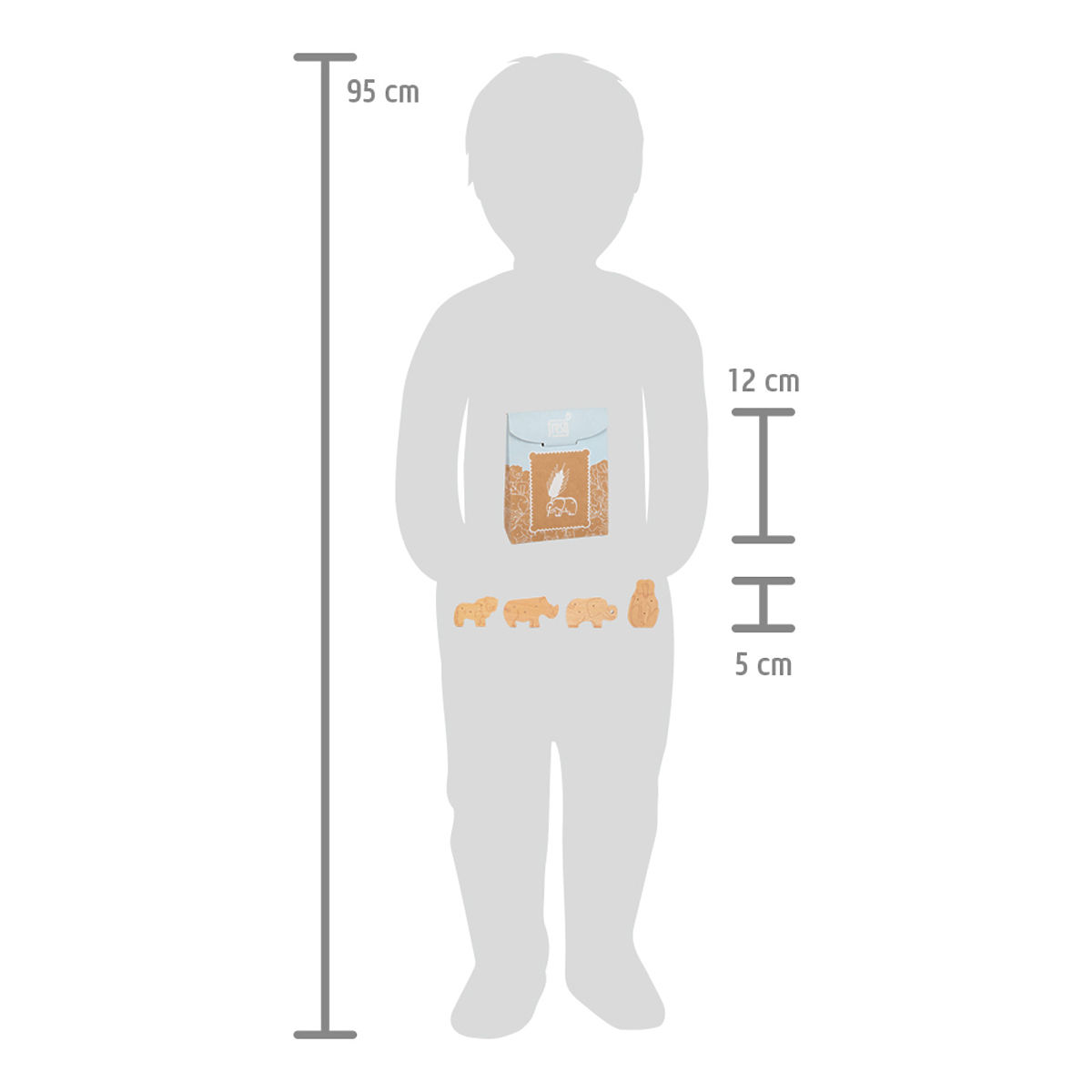Animalele savanei sub formă de biscuiți! Acești 8 biscuiți robusti cu animale sunt fabricați din lemn. Vor îmbogăți orice stand de vânzare pentru copii sau bucătărie. Sunt ambalați într-un ambalaj solid din carton natural. Conținutul pachetului este ilustrat pe partea din spate a ambalajului. Aspectul natural și realist al acestor biscuiți îi va face favoriții copiilor. În pachet sunt 2 lei, 2 maimuțe, 2 rinoceri, 2 elefanți. Jucăria oferă copiilor distracție de lungă durată, mai ales în combinație cu alte produse din gama „Fresh”. Principalele caracteristici: opt biscuiți robuști, un accesoriu ideal pentru standurile de vânzare și bucătăriile pentru copii, biscuiți realiști în formă de animale, ambalați în carton netratat, cutia poate fi deschisă și închisă ușor, compatibilă cu alte produse din gama „Fresh”.