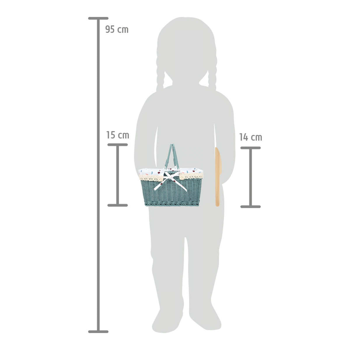 Puteți pleca la picnic! Acest coș de picnic de calitate, cu mânere pliabile și o pătură de picnic, va fi un accesoriu excelent pentru excursiile dumneavoastră la țară sau în grădină. Coșul este împletit din răchită de calitate și este echipat pentru 2 persoane. Vesela și mâncarea sunt fabricate din lemn solid. Portocala și croissantul sunt ținute împreună cu ajutorul unui arici. Căptușeala interioară a coșului poate fi îndepărtată și curățată ușor. Această jucărie are aceleași culori ca bucătăria „Tasty” și alte produse din această serie. Copiii se vor bucura de jocuri imaginative acasă și în aer liber. Unele dintre alimente pot fi „tăiate” cu ajutorul unui cuțit de lemn. Principalele caracteristici: coș de picnic modern și robust din răchită, „mâncare” pentru două persoane, mânerele pot fi pliate, pătură inclusă cu același model, căptușeala interioară poate fi ușor îndepărtată, jucărie pentru jocuri de rol în bucătării sau la picnic, ajută la dezvoltarea abilităților motorii fine, sociale și de zi cu zi, design modern combinat cu alb, lemn natural și culori la modă, compatibil cu alte produse din gama „Tasty”