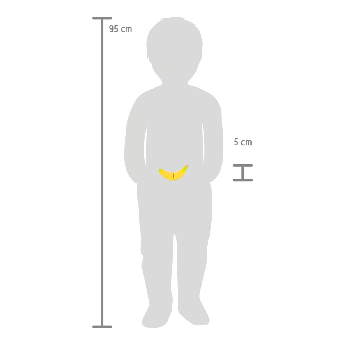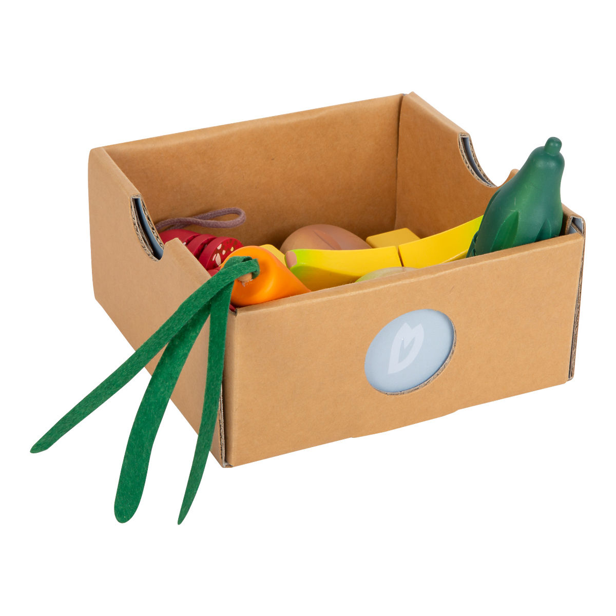 Cu acest set de alimente de tăiat din lemn robust, copiii se pot juca de-a bucătarii șefi! Este compus din alimente obișnuite, pe care copiii le vor recunoaște fără probleme. Setul include o placă de tăiat, un cuțit de lemn și un ambalaj reutilizabil, care poate fi folosit pentru depozitarea jucăriei. Pe o parte a plăcii de tăiat se poate scrie cu cretă, astfel încât să vă notați lista de cumpărături sau rețeta. Este cu adevărat important să învățați tehnica corectă de tăiere, iar cu această jucărie va fi floare la ureche. Roșie, castravete, morcov, măr, banană, o bucată de brânză, salam, unt și pâine – toate sunt incluse în acest set! Alimentele cu aspect natural și detaliat sunt ținute împreună cu ajutorul scaiului. Datorită ambalajului sustenabil, copiii vor învăța ceva nou despre ecologie. Placa de tăiat poate fi agățată datorită unui orificiu. Principalele caracteristici: alimente de tăiat din lemn robust, piese cu scai, set extins cu placă de tăiat, cuțit, roșie, castravete, morcov, măr, banană, o bucată de brânză, salam, pâine, ambalat în ambalaj reutilizabil, copiii învață ceva nou despre ecologie în timpul jocului, pe o parte a plăcii de tăiat se poate scrie cu cretă