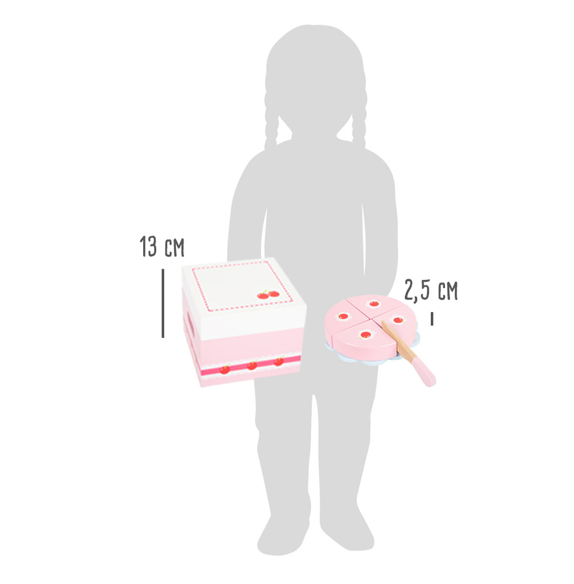 Dimensiuni: cutie 17x17x13 cm, înălțimea tortului 2,5 cm, Ø 13 cm