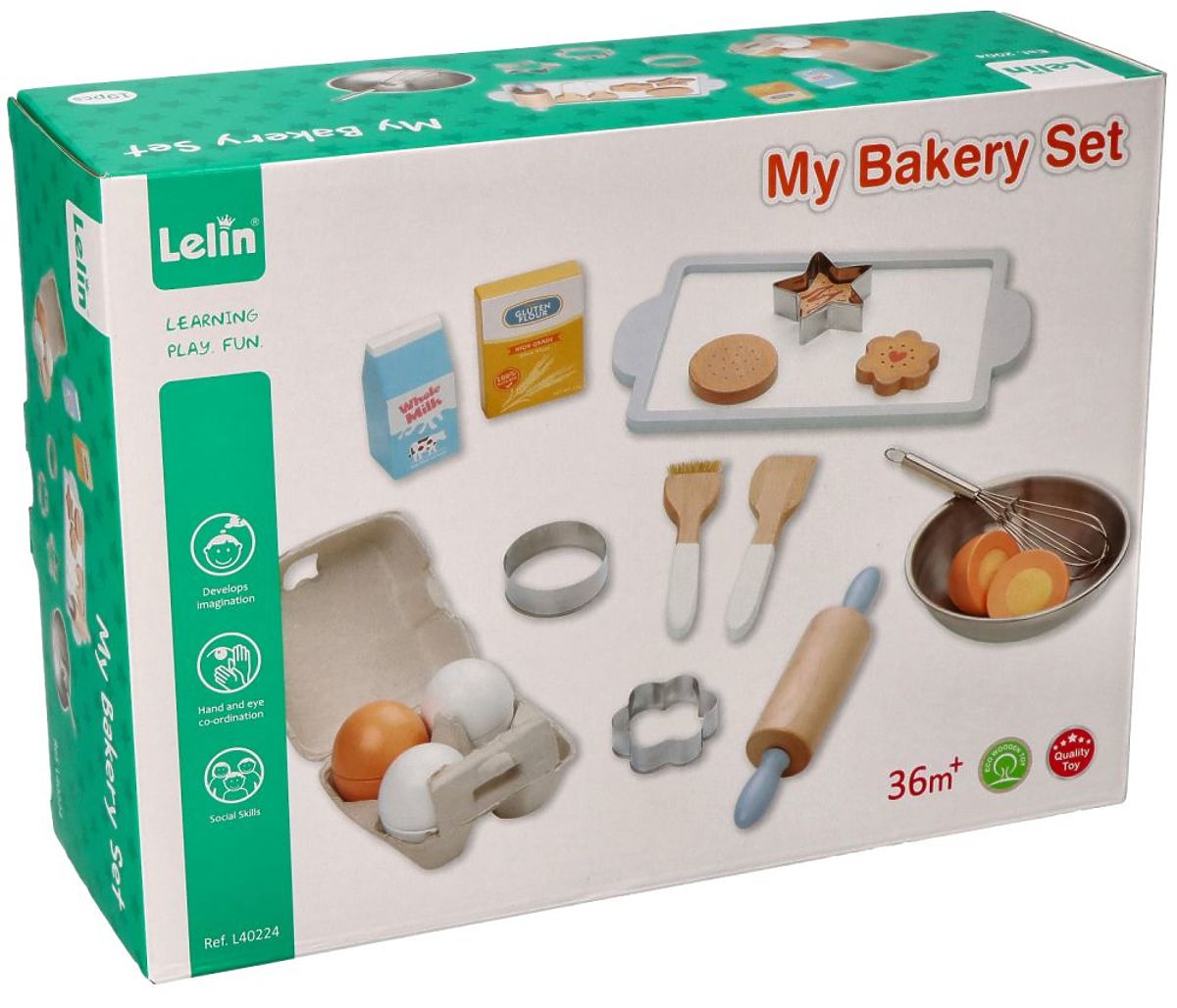 Elementele individuale sunt fabricate din lemn și oțel inoxidabil, ceea ce le face sigure pentru copil. Vârstă: 3+ Dimensiuni ambalaj: 26 x 19 x 8.5 cm Referință: L40224 Declarație de conformitate CE