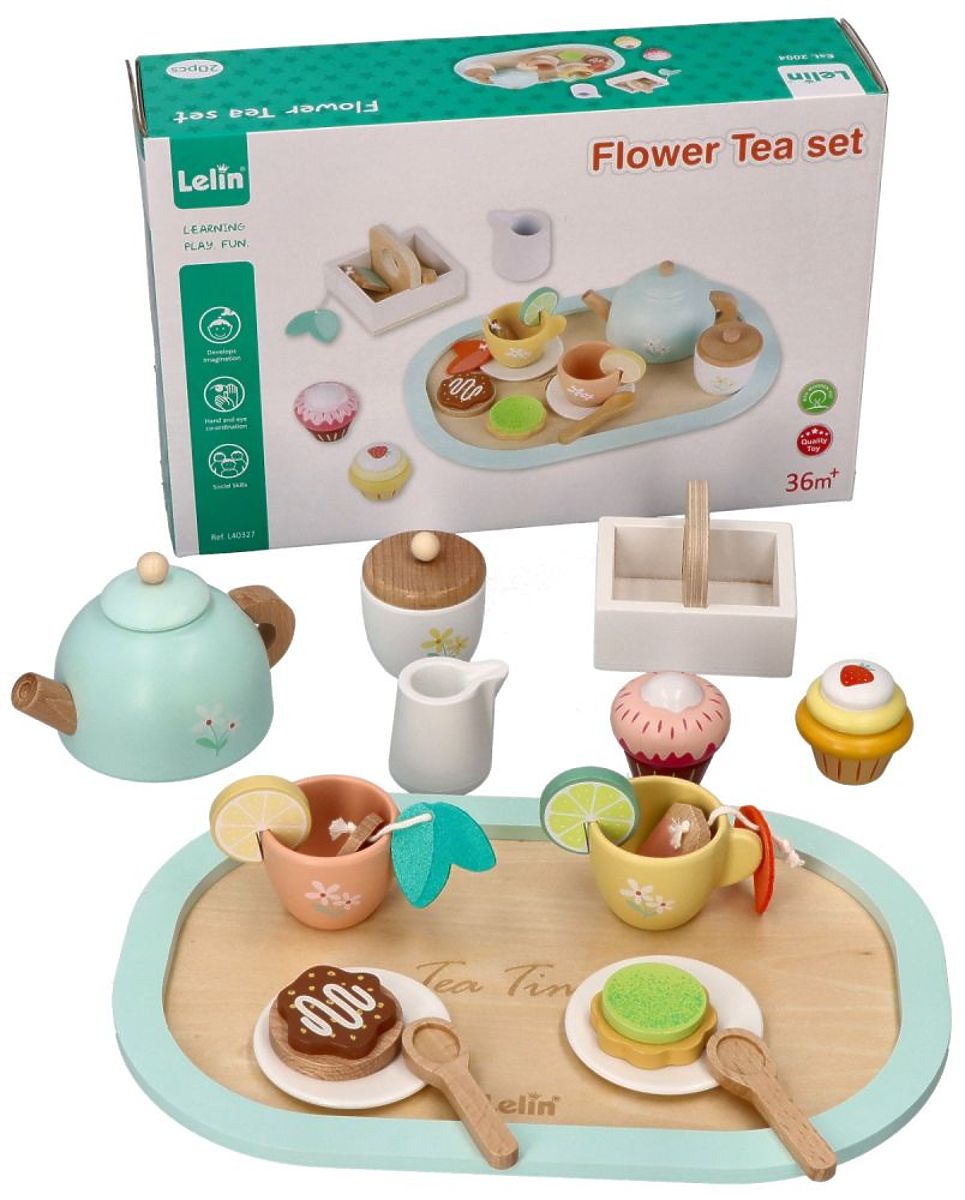 Intrați în lumea ceaiurilor cu această frumoasă set de lemn decorată cu flori delicate. Culorile pastelate și modelele florale delicate vor transporta fiecare copil într-o lume magică a fanteziei, unde jocul devine o adevărată artă a ospitalității. Totul este realizat din lemn natural și este sigur pentru mâinile mici. Motivele florale adaugă farmec și fac setul potrivit nu doar pentru joacă, ci și ca decor pentru camera copilului.