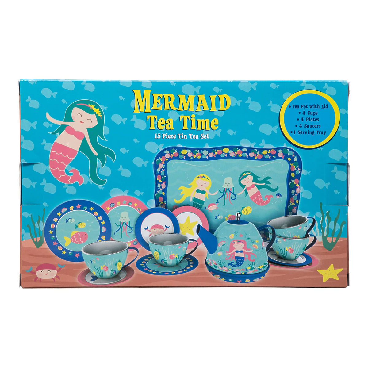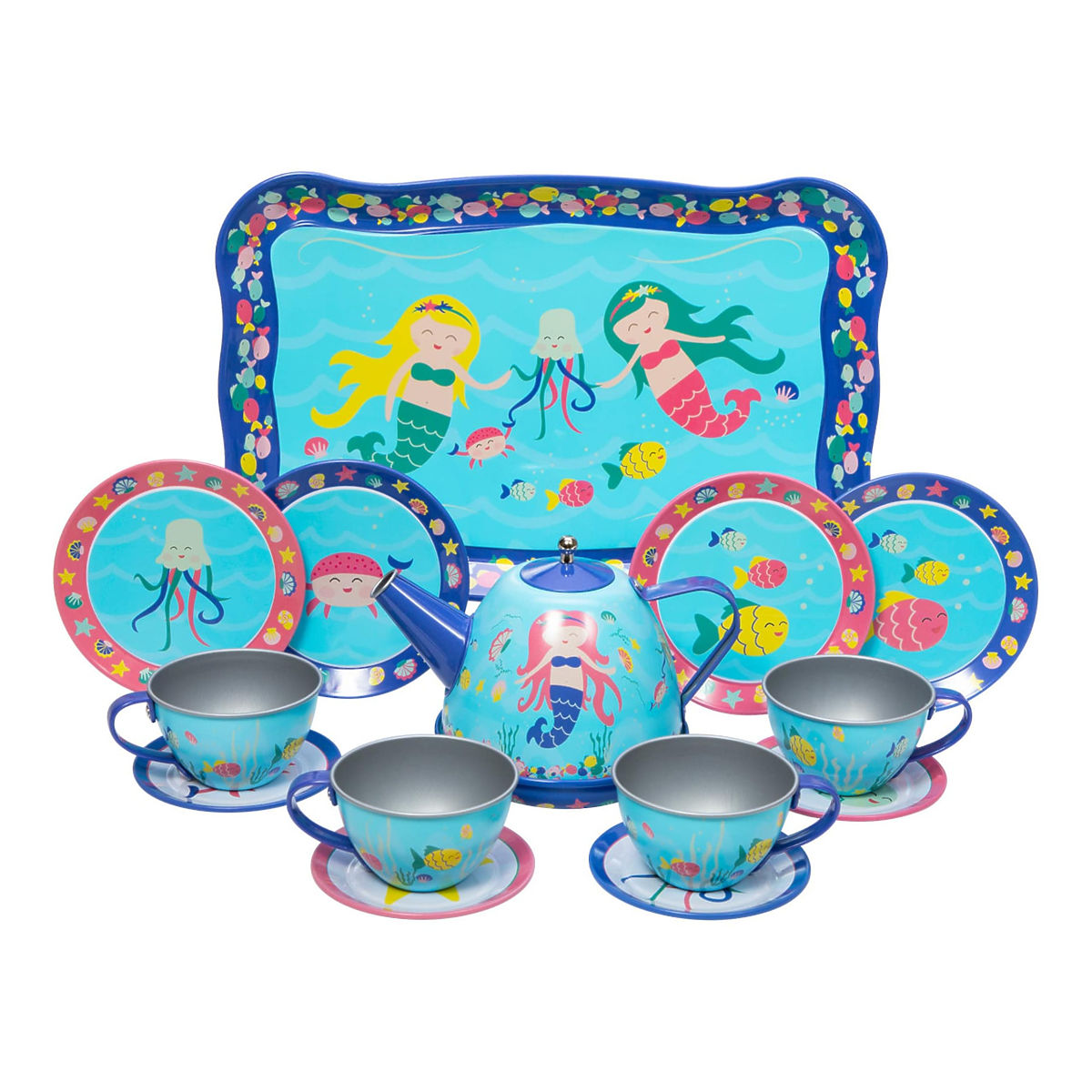 Este timpul pentru ceai. Un frumos set de ceai din 15 piese realizat din metal, conține 4 cești cu farfurioare, 4 farfurii de desert, un ceainic cu capac și o tavă de servire, toate cu design de sirene. Creativitatea crește atunci când copiii dumneavoastră își invită prietenii, păpușile și jucăriile de pluș la acest frumos set de ceai. Potrivit pentru micii gazde și gazde de la vârsta de 3 ani. Principalele caracteristici: set de ceai din 15 piese, ideal pentru petreceri de ceai imaginare, design cu motiv de sirene.