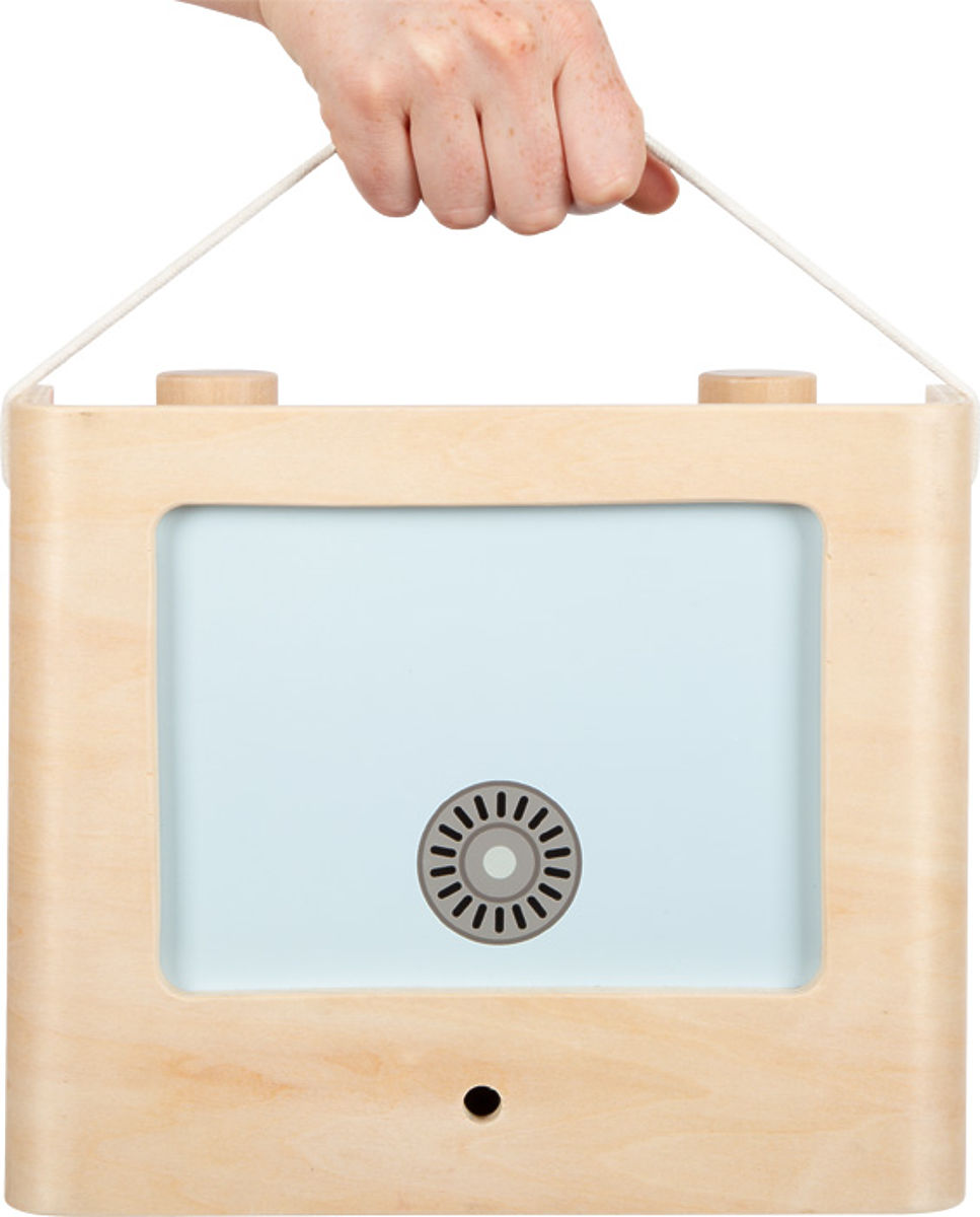 Acest aragaz mobil impresionează prin multifuncționalitatea sa. Combină o bucătărie de masă, un aragaz de camping, un grătar, o chiuvetă și un cuptor. Oferă spațiu pentru jocuri imaginative și diverse scenarii de joc. Culorile moderne, în combinație cu lemnul natural curbat, fac din această bucătărie un adevărat punct de atracție. Include un mâner practic (frânghie) pentru transport. Două foi de carton conțin alimente/ingrediente necesare pentru gătit. De asemenea, include un prosop de bucătărie, o tigaie, o oală cu capac, clești de grătar și o spatulă de lemn și, desigur, include și un cuptor de copt cu două fețe (partea de sus și de jos servesc fie ca aragaz, fie ca chiuvetă). Principalele caracteristici: dezvoltă imaginația și creativitatea, susține comunicarea și abilitățile sociale.