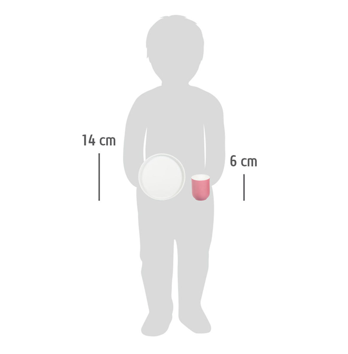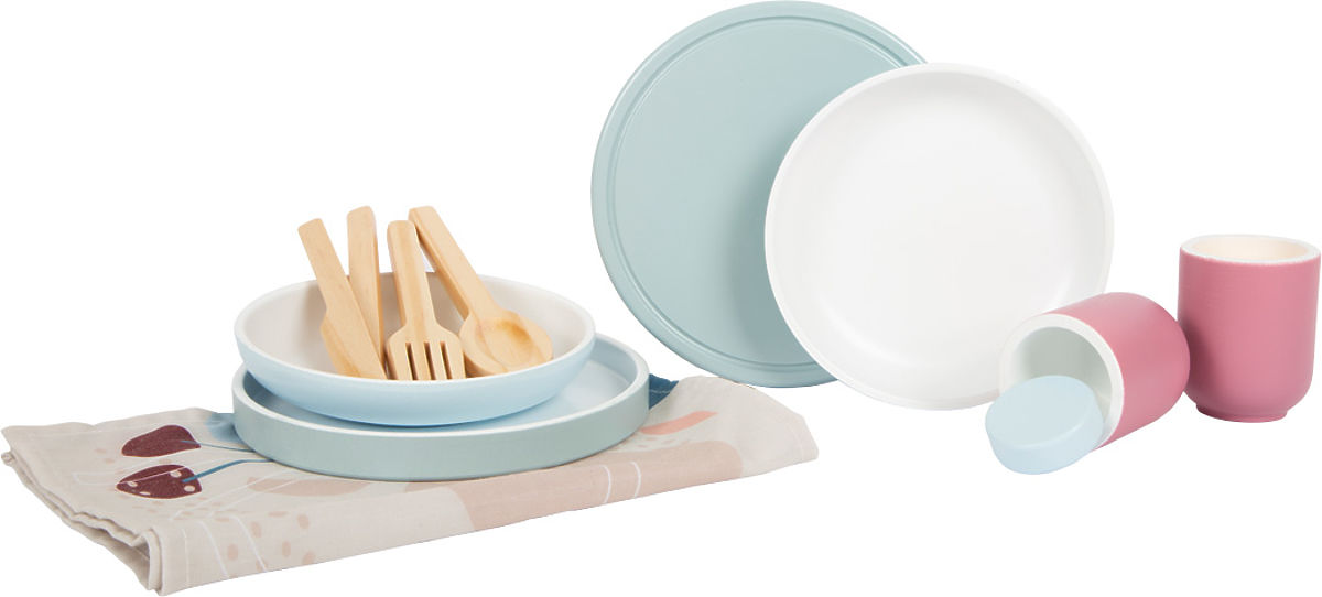 Set modern de veselă, inclusiv farfurii, cești, tacâmuri și suporturi pentru două persoane. Fabricat din lemn robust și durabil, de înaltă calitate, conceput să reziste. Oferă efecte educative suplimentare cu suporturile imprimate care arată cum să așezi corect masa. Design modern cu forme liniare și o combinație de lemn natural cu culori la modă, albastru fumuriu și roșu bace. Armonie perfectă între culoare și design cu colecția Tasty, unde găsiți bucătăria pentru copii și alte produse de bucătărie. Pentru o distracție deosebit de realistă în jocurile de rol din bucătăria pentru copii. Susține dezvoltarea abilităților motorii fine, abilităților sociale și a altor abilități de zi cu zi. Datorită designului echilibrat și schemei moderne de culori, se potrivește deosebit de bine în mediul modern al camerei de copii și al livingului. Principalele caracteristici: Susține dezvoltarea abilităților motorii fine și sociale Conține 12 piese