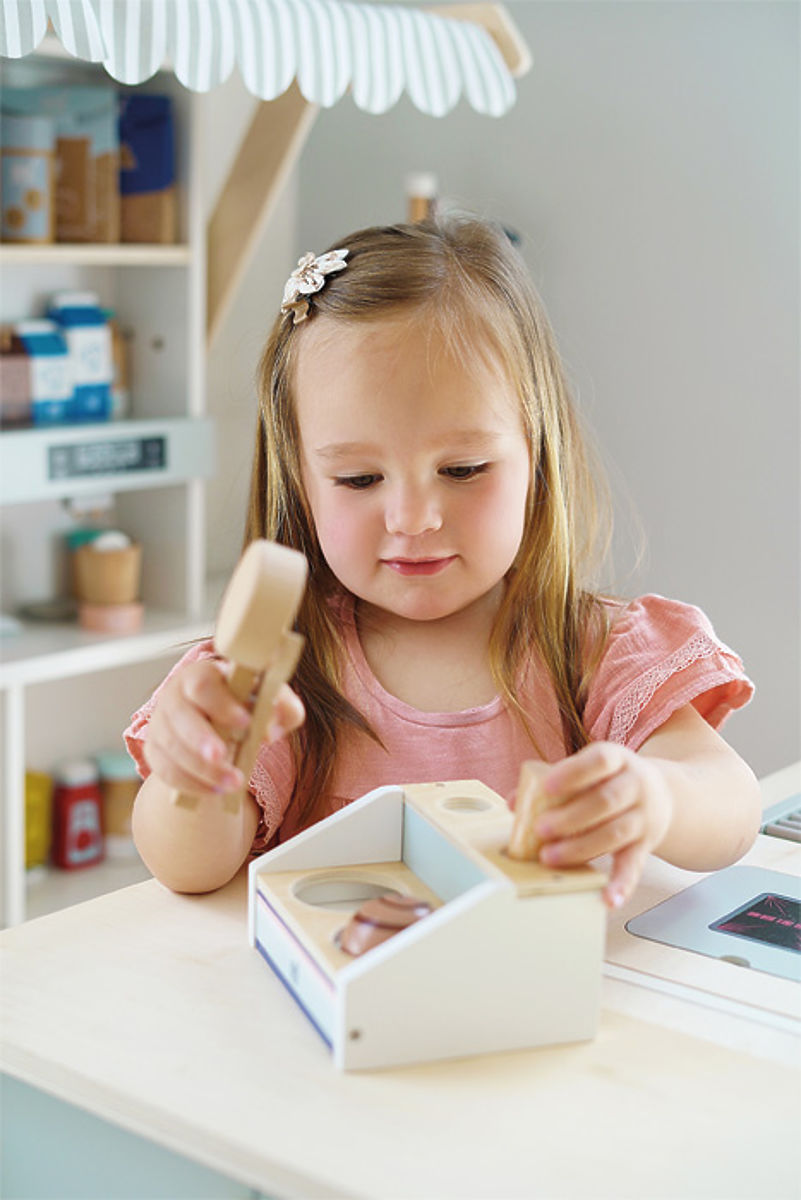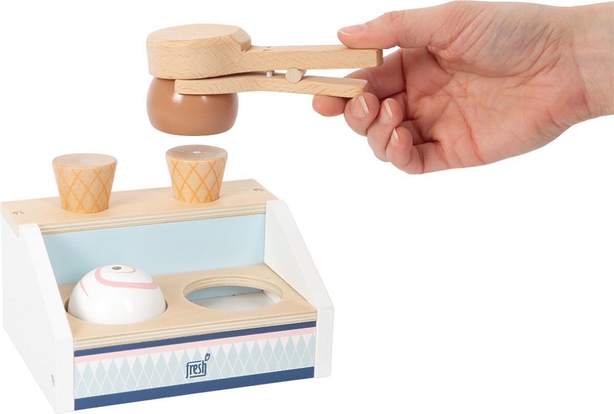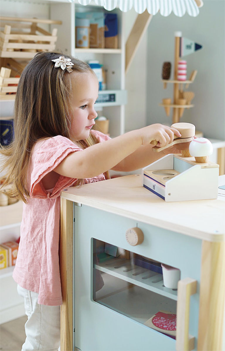 Astăzi avem înghețată! Acest stand cu două compartimente, datorită designului său minimalist și materialului natural, se potrivește de minune în bucătăriile mici din fiecare cameră de copii! Include o lingură, cornete și cupe de înghețată stivuibile (aceste cupe pot fi stivuite datorită magneților lor). Punctul culminant al setului de joacă este lingura magnetică pentru înghețată – cu o simplă apăsare a unui buton, puteți așeza înghețata pe cornet! Principalele caracteristici: schemă de culori neutră din punct de vedere al genului, accesoriu potrivit pentru produsele LE11815, LE12417 sau LE12232, lingura, cornetele și cupele de înghețată stivuibile au magneți, jocul susține abilitățile de comunicare și creativitatea.