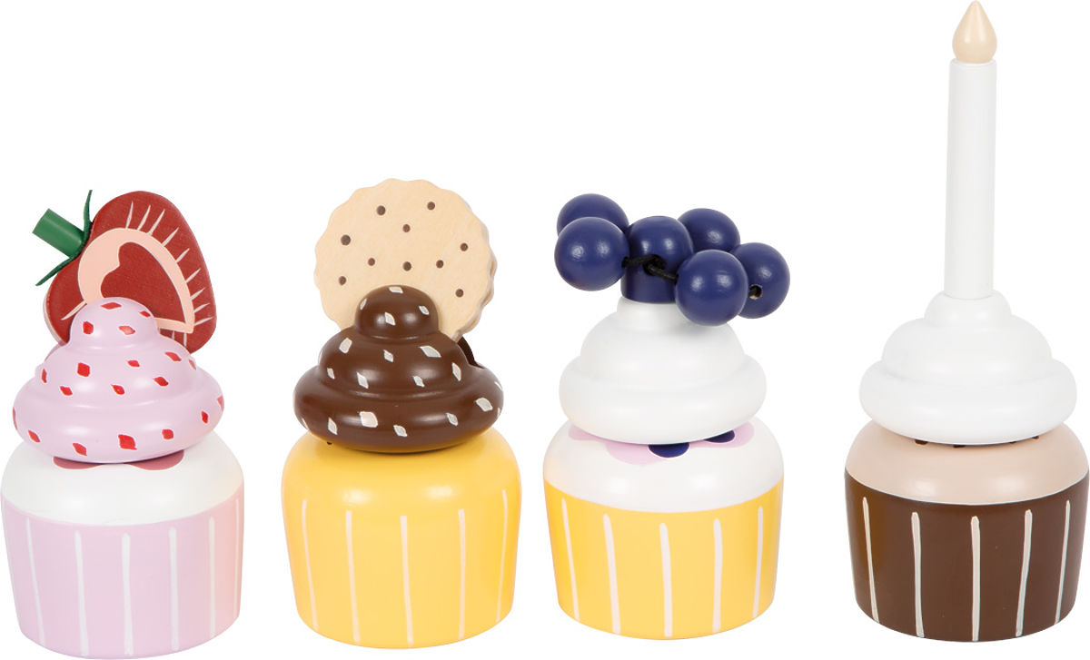Delicii pentru bucătăria copiilor. Acest suport cu patru coșulețe invită micii cofetari să se joace activ și să prezinte brioșe delicioase. Suportul are două etaje, care servesc la expunerea dulciurilor în straturi. Sistemul de baze și vârfuri de cremă combinabile permite o gamă largă de combinații. Piesele individuale sunt ținute împreună prin magneți integrați. Setul este completat de un biscuit dublu, o felie de căpșună, afine și o lumânare de aniversare, care poate decora prăjiturile. Acest lucru va încuraja pofta de ceai cu păpuși, urși de pluș etc. Cine nu ar saliva la această priveliște? Un accesoriu ideal pentru bucătărie și magazinul de alimente. Detalii precum mânerul din imitație de piele maro închis, magneții integrați și culorile scandinave moderne și discrete fac din suport un punct de atracție de înaltă calitate și stil pentru camera copilului. Principalele caracteristici: culori scandinave discrete care inspiră și stimulează conversația1 suport, 4 brioșe, 4 toppinguri, 1 lumânare, 1 biscuit, 1 căpșună, 1 afină