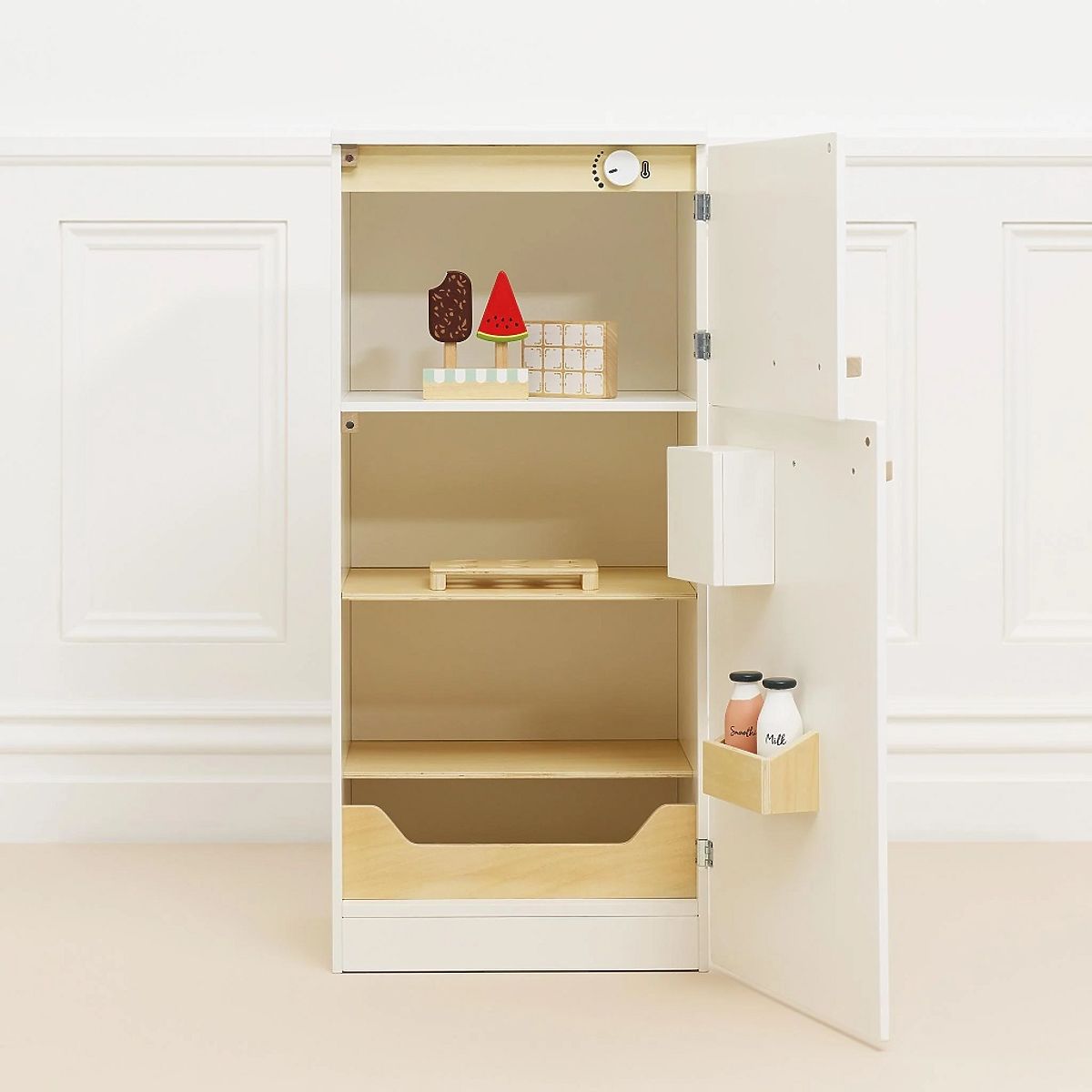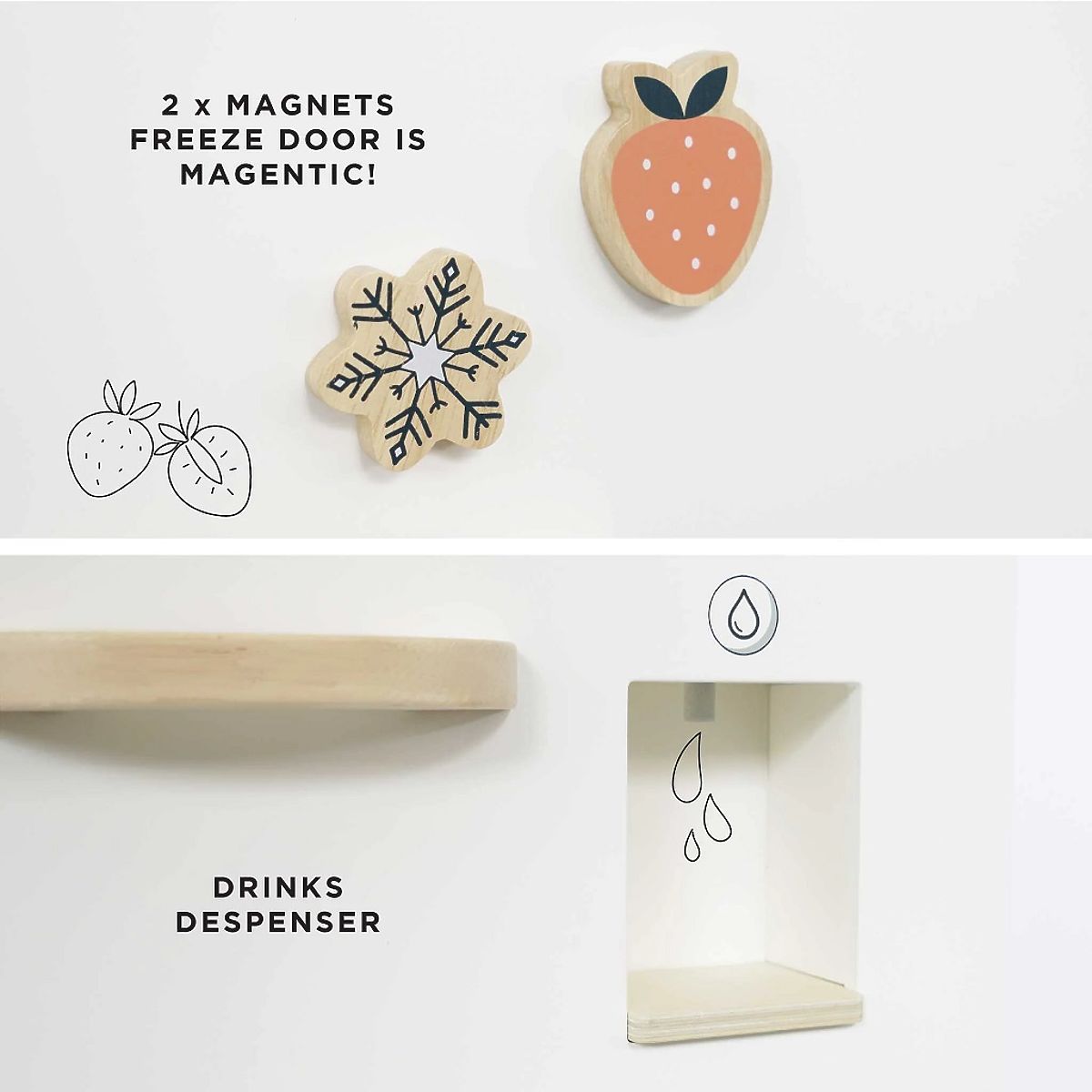 Îmbunătățiți-vă bucătăria cu acest frigider uimitor, independent, cu congelator! Jucăria durabilă, cu un design retro atrăgător, este plină de funcții interactive pentru mai multă distracție și jocuri de rol imaginative. Descoperiți distribuitorul de apă încorporat, controlul temperaturii sau compartimentele pentru fructe și legume. Setul complet vine și cu o serie de accesorii, inclusiv 2 înghețate pe băț, un suport, tăvi pentru ouă și gheață și o sticlă pentru lapte sau smoothie. Ușile frigiderului sunt magnetice și, în plus, există două magneți practici și decorativi. Frigiderul este compatibil cu bucătăria mare Le Toy Van (cod TV347). Setul este realizat din lemn certificat FSC® (lemn din păduri gestionate durabil) și decorat cu vopsele pe bază de apă, sigure pentru copii. Jucării cu scopToate jucăriile firmei Le Toy Van sunt create pentru a dura mult timp. Proiectate cu dragoste de meșteri experimentați, folosind practici etice și materiale durabile, care sunt mai prietenoase cu planeta noastră. Caracteristici principale: realizat etic din lemn durabil FSC vopsit cu vopsele netoxice pe bază de apă testat conform celor mai stricte standarde conține frigider cu congelator, 2 magneți, tavă pentru cuburi de gheață, tavă pentru ouă, 2 înghețate pe băț, 2 sticle, distribuitor de apă inspiră jocul imaginativ Marca și certificatul FSC® (Forest Stewardship Council) garantează că lemnul din care a fost fabricat produsul nu a fost exploatat ilegal și provine din păduri gestionate într-un mod prietenos cu natura, în care sunt respectate cerințe stricte de mediu și sociale. Marca FSC® pe produs înseamnă că prin achiziția dvs. ajutați la protejarea pădurilor și sprijiniți gestionarea responsabilă și prietenoasă cu natura, datorită căreia pădurile noastre sunt mai stabile, mai sănătoase, au o compoziție naturală a speciilor și rezistă mai bine efectelor negative ale schimbărilor climatice.