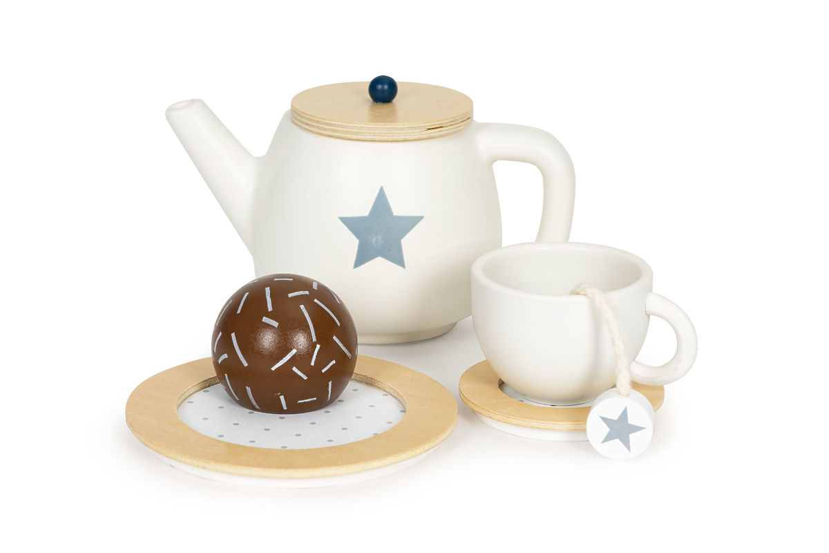 Banaby.ro » Jucării / Bucătării de jucărie / lemn galeră / Set de ceai din lemn cu ceainic și cești 17 piese ECOTOYS