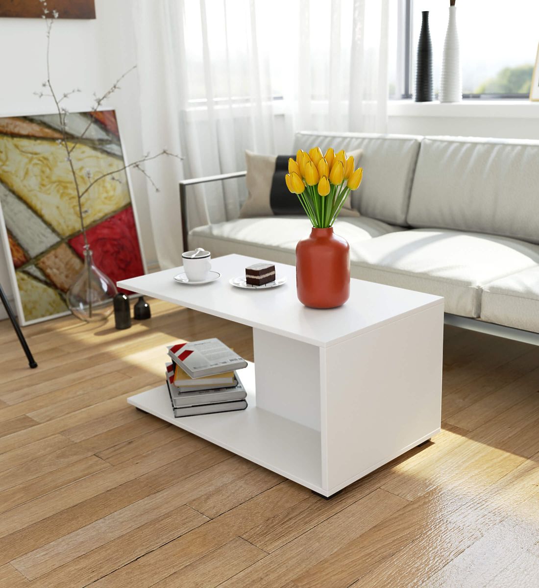 Masă de cafea albă cu raft suplimentar, ideală pentru orice living. .. mai mult