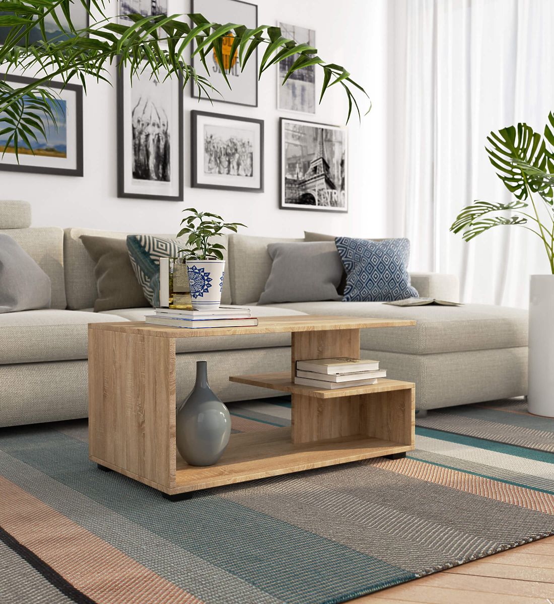 Masă de cafea PIN în culoare stejar sonoma, design modern și rezistentă. .. mai mult