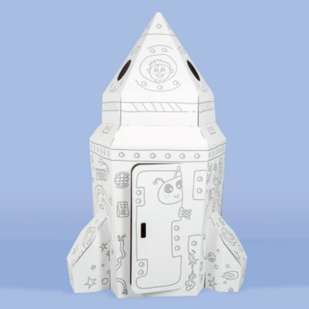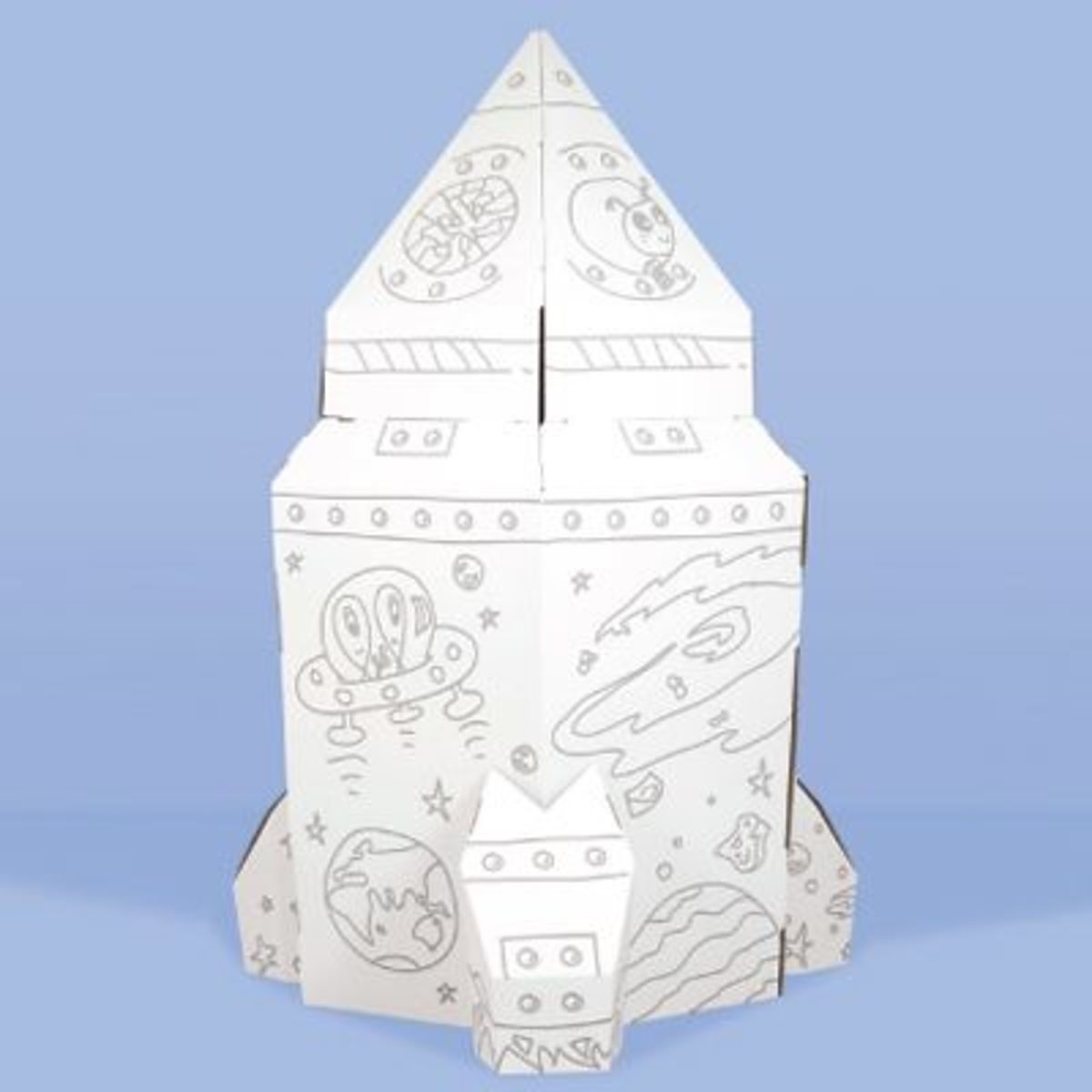 Racheta este realizată din carton ondulat alb cu 5 straturi, pentru asamblare și colorare. (nu necesită lipici sau foarfece!)