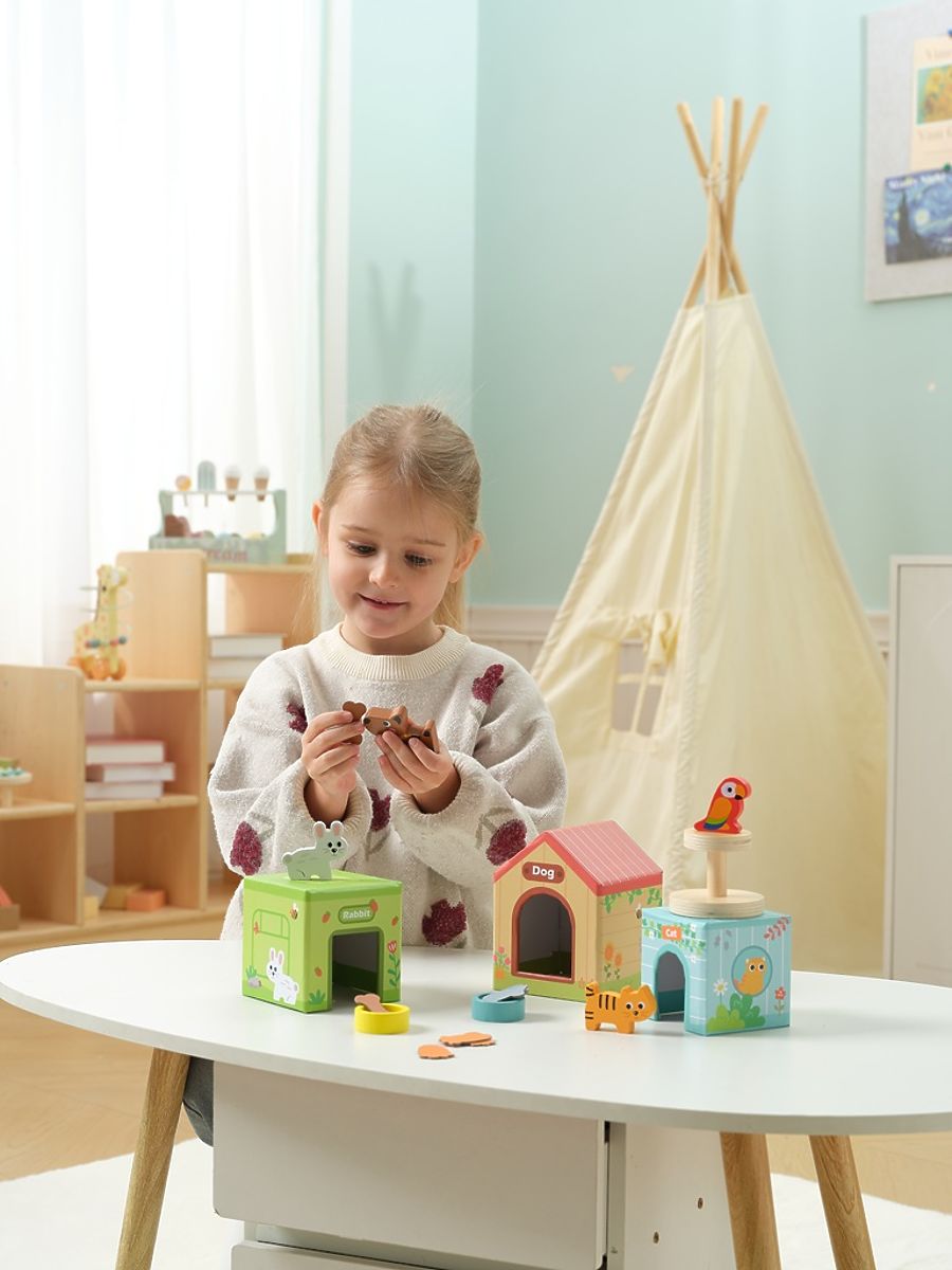 Bucurați-vă de multă distracție cu animalele de companie din lemn! Câinele, pisica și iepurașul au fiecare propria lor căsuță și mâncare, iar papagalul îi supraveghează de pe o stinghie. În timpul jocului, copiii își exersează motricitatea fină, abilitățile sociale și coordonarea mână-ochi. Acest set colorat și jucăuș stimulează jocul imaginativ. Le oferă copiilor posibilitatea de a învăța cum trăiesc animalele și cum să aibă grijă de ele corect. Fabricat din lemn certificat FSC. Principalele caracteristici: design compact și ușor de depozitat, dezvoltă motricitatea și imaginația, creează o legătură cu animalele și natura. Marca și certificatul FSC® (Forest Stewardship Council) garantează că lemnul din care a fost fabricat produsul nu a fost exploatat ilegal și provine din păduri gestionate într-un mod prietenos cu natura, respectând cerințe stricte de mediu și sociale. Marca FSC® pe produs înseamnă că prin achiziția dumneavoastră ajutați la protejarea pădurilor și susțineți o gestionare responsabilă și prietenoasă cu natura, datorită căreia pădurile noastre sunt mai stabile, mai sănătoase, au o compoziție naturală a speciilor și rezistă mai bine la efectele negative ale schimbărilor climatice.