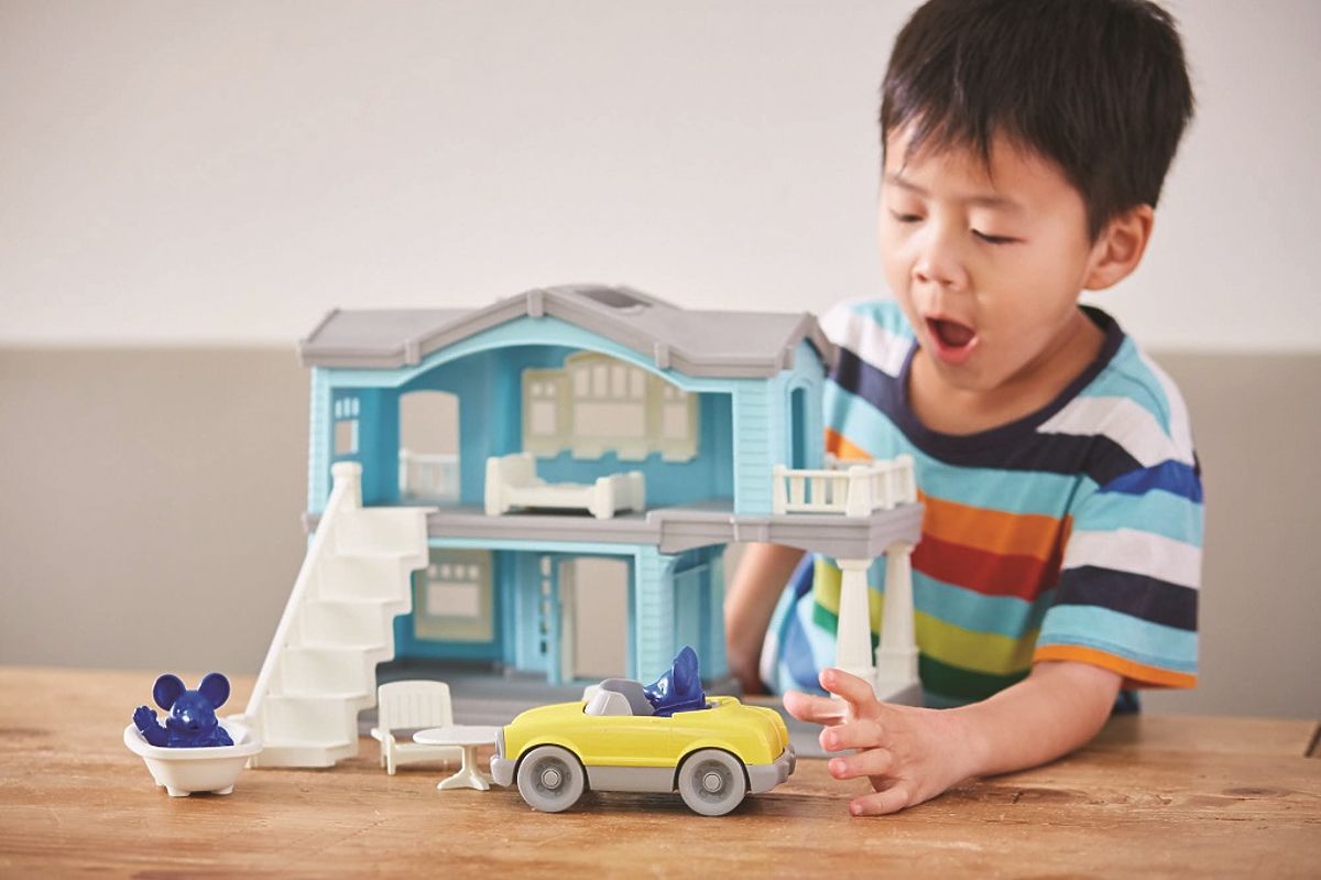 Priviți, căsuța Green Toys pentru un joc plin de imaginație și creativitate! Are două etaje, setul include și un decapotabil galben, 2 figurine de șoareci, o scară, un pat, o cadă, o masă și 2 scaune. Scara glisantă poate fi plasată oriunde la etajul doi, pe balcon sau pe partea din spate a casei. Cada, patul, masa și scaunele se potrivesc în orice cameră. Casa are partea din spate deschisă și balcoane, copiii o pot amenaja după propriile dorințe. Îi va încuraja în jocul cooperativ și interactiv. Piesele se potrivesc ușor în casă, astfel pot rămâne acolo și în afara jocului, economisind spațiu de depozitare. Jucăria este netoxică, nu conține BPA, PVC, ftalați și nici vopsea exterioară. Fabricată din plastic 100% reciclat. Dacă căutați jucării din plastic pentru nisip sau apă și vă pasă foarte mult de siguranța copiilor dumneavoastră, verificați produsele mărcii americane Green Toys. Produc jucării ecologice, populare nu doar în SUA, iar compania are un succes incredibil cu produsele sale în întreaga lume. Green Toys înseamnă în primul rând producția responsabilă de jucării din plastic reciclat din sticle de lapte. Caracteristici principale: casă, 2 figurine, decapotabil, scară, pat, cadă, masă, 2 scaune toate piesele se potrivesc în casă material sigur fără BPA, PVC, ftalați potrivit pentru mașina de spălat vase fabricat din plastic 100% reciclat în SUA