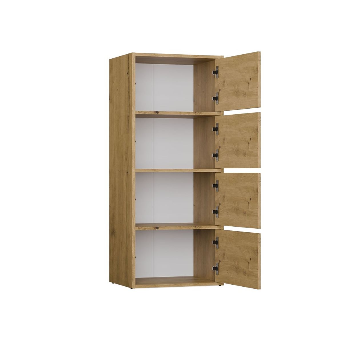Datorită rafturilor spațioase ascunse în spatele ușilor netede, comoda oferă mult spațiu de depozitare și facilitează menținerea ordinii în orice spațiu.