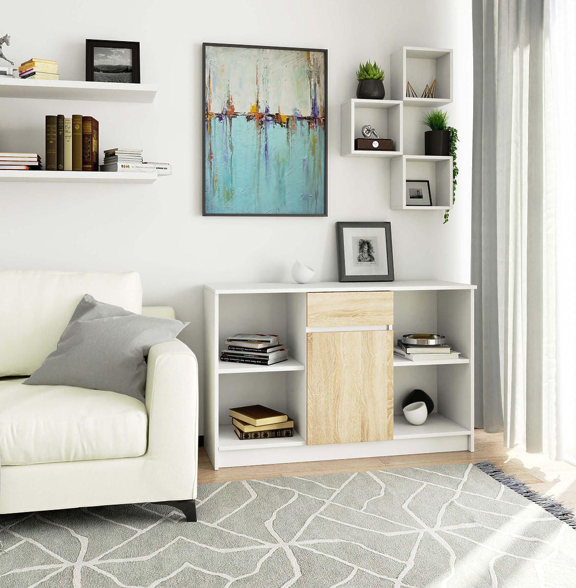 Comodă B-17 cu design modular și spațiu generos de depozitare. .. mai mult