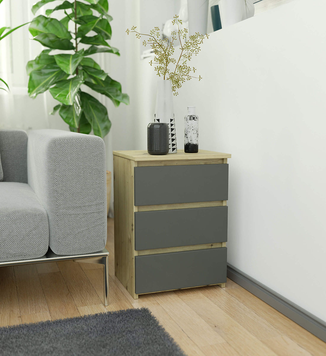 Noptierele sunt un tip popular de mobilier care se plasează lângă pat. Pe suprafața lor se află cel mai adesea o lampă, în timp ce în interior se găsesc obiecte care facilitează odihna și somnul. Cei care caută o comodă elegantă ar trebui să acorde atenție noptierei CL3 de 40 cm în culoarea stejar artisan cu fronturi gri. Se va evidenția frumos în orice dormitor. Poate fi plasată și în camera copiilor.