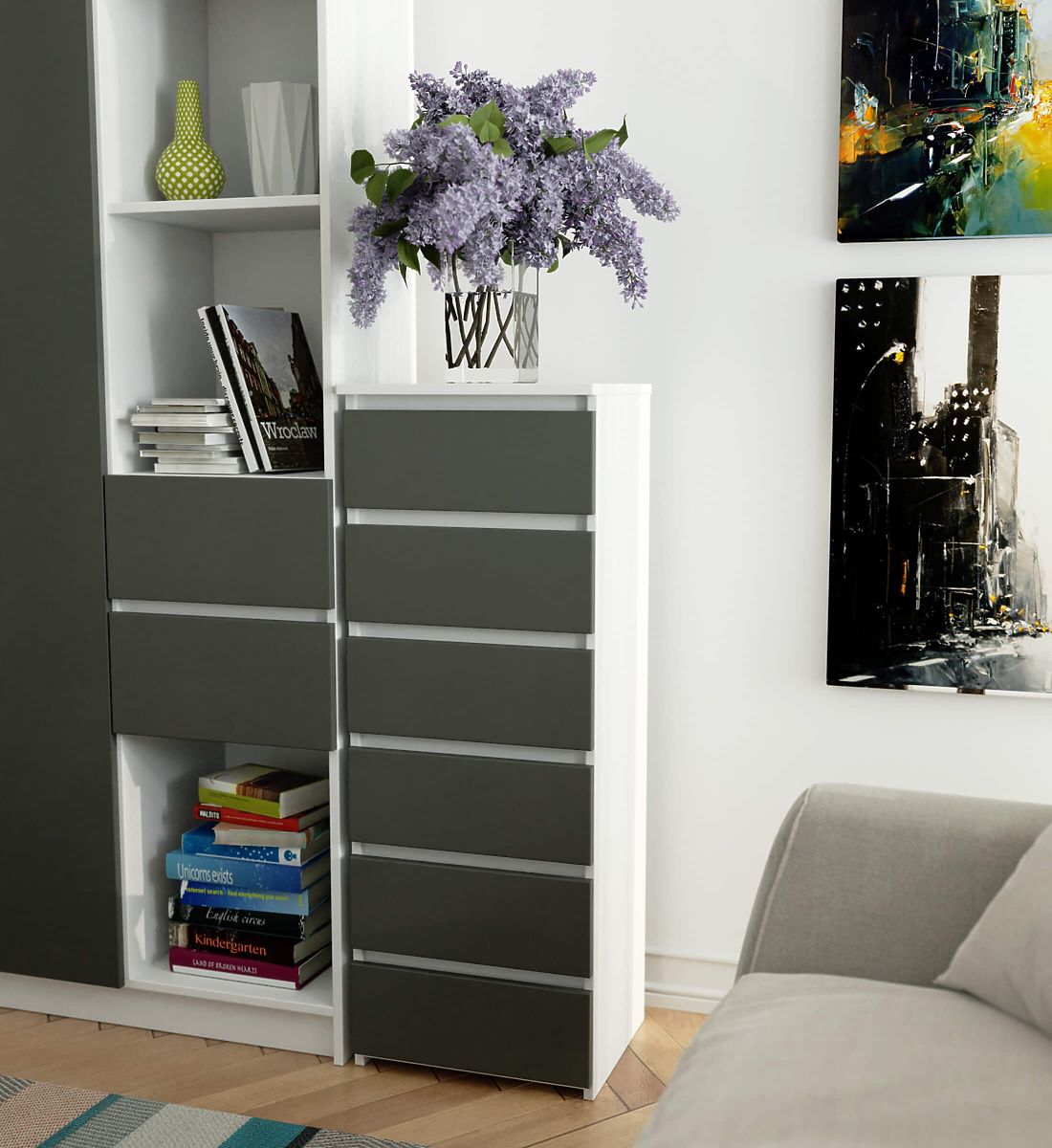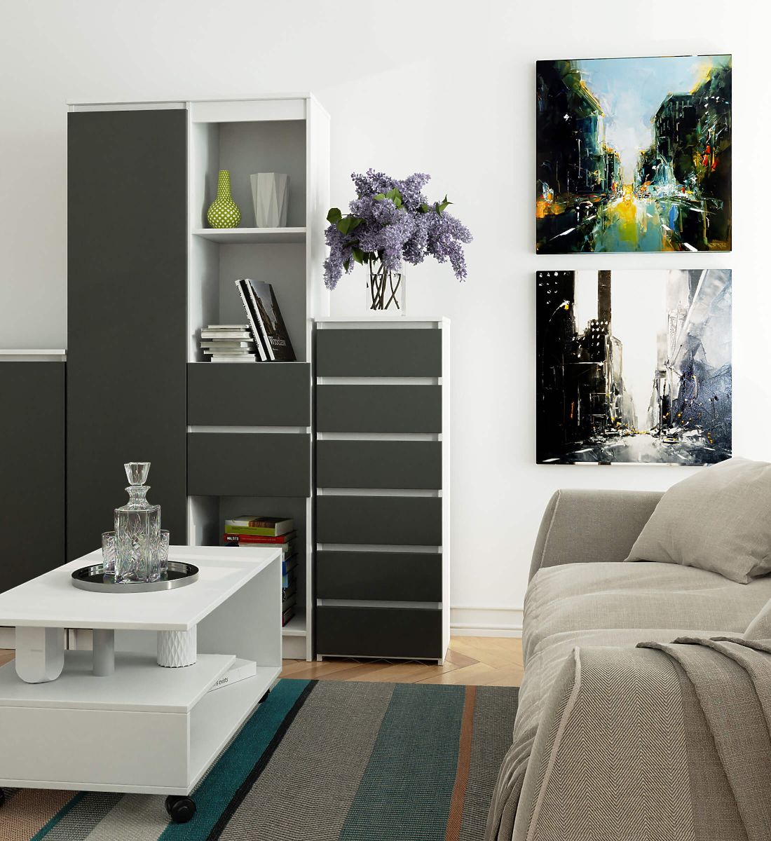 Comodele sunt un tip popular de mobilier care se plasează lângă pat. Pe suprafața sa se află adesea o lampă, în timp ce în interior se găsesc obiecte care facilitează odihna și somnul. Cei care caută o comodă elegantă ar trebui să acorde atenție comodei CL6 de 40 cm în culoare albă cu fețe gri grafit. Se va evidenția frumos în orice dormitor. Poate fi plasată și în camera copiilor.