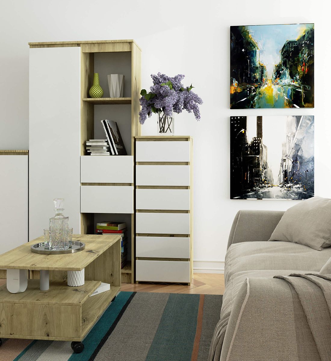 COMODĂ CL6 6SZ STEJAR ARTISAN / ALB