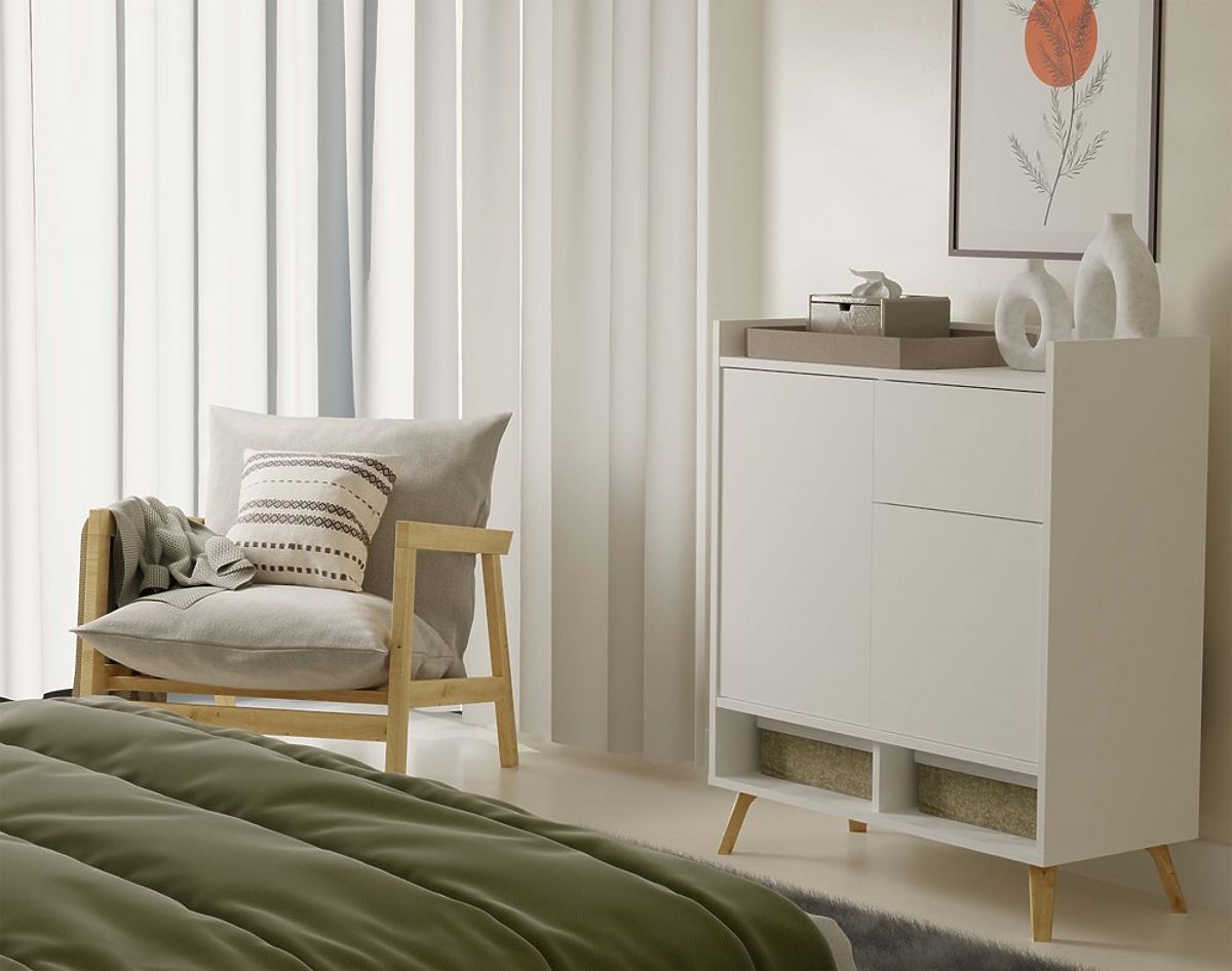 Comodă COLIN Dulap 2 Uși 1 Sertar cu Picioare ALBĂ