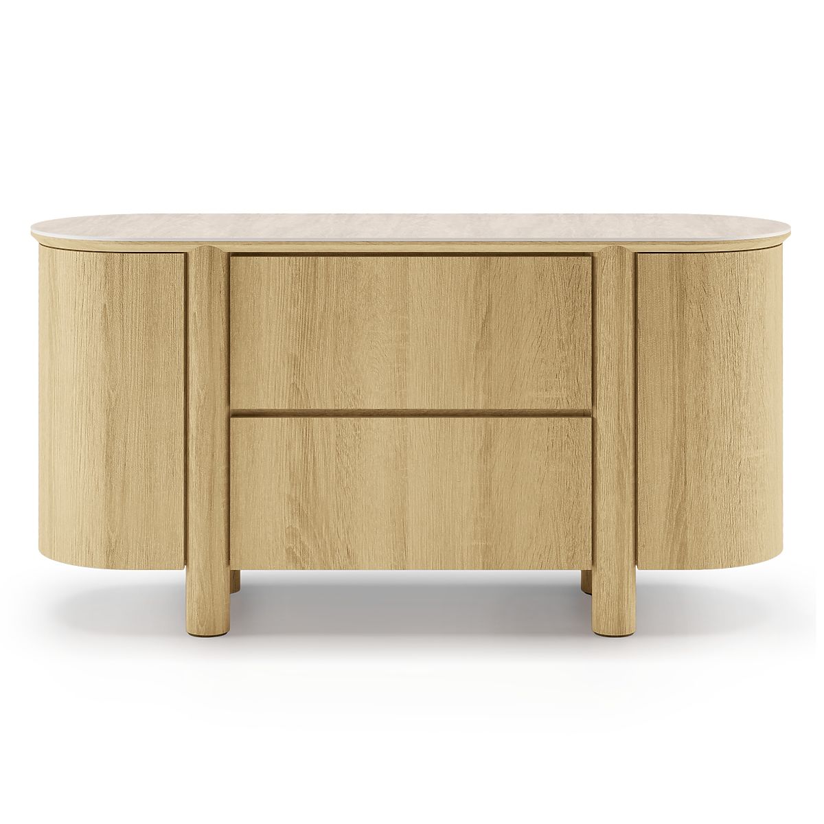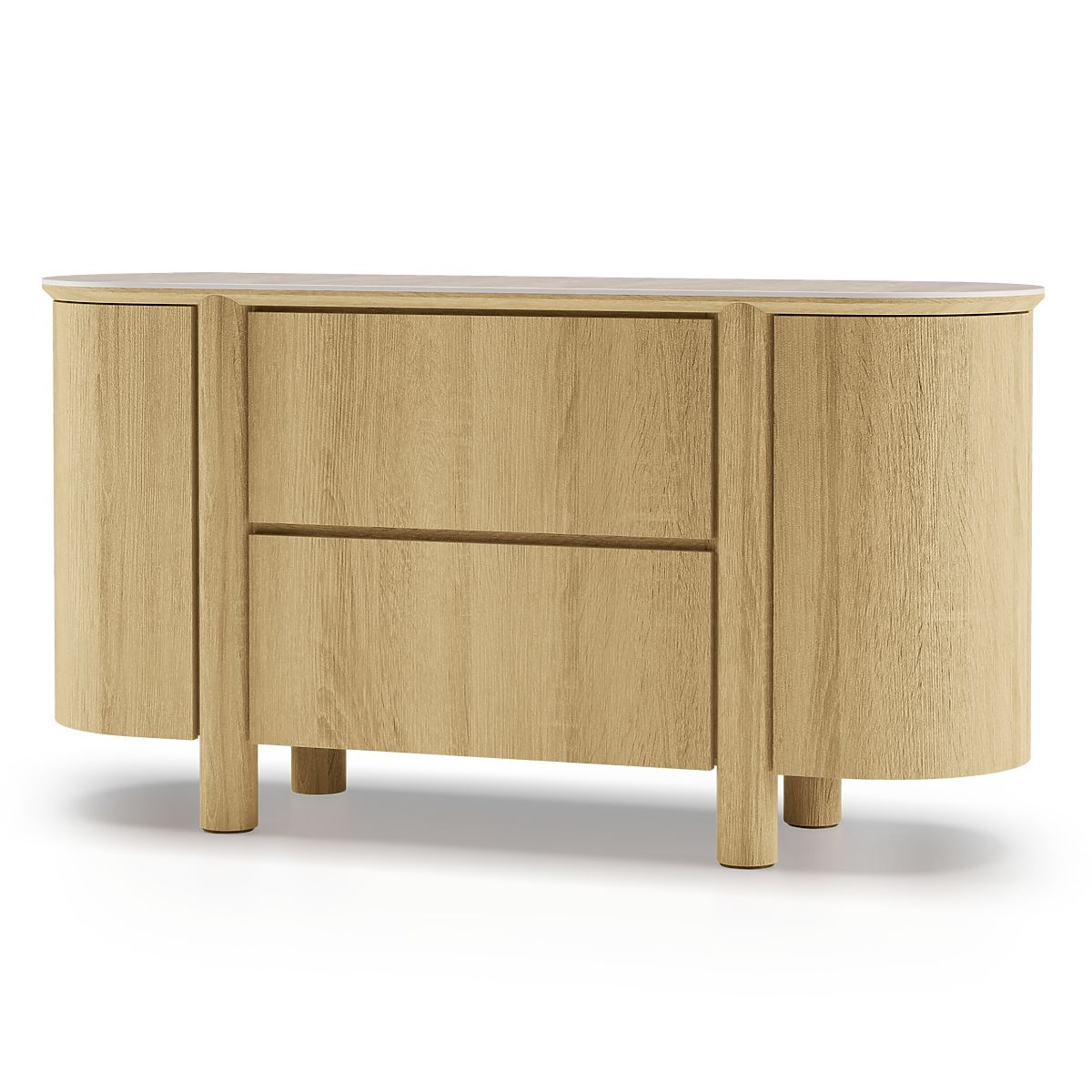 Comodă Segretto rotunjită, stejar natural și travertin. .. mai mult