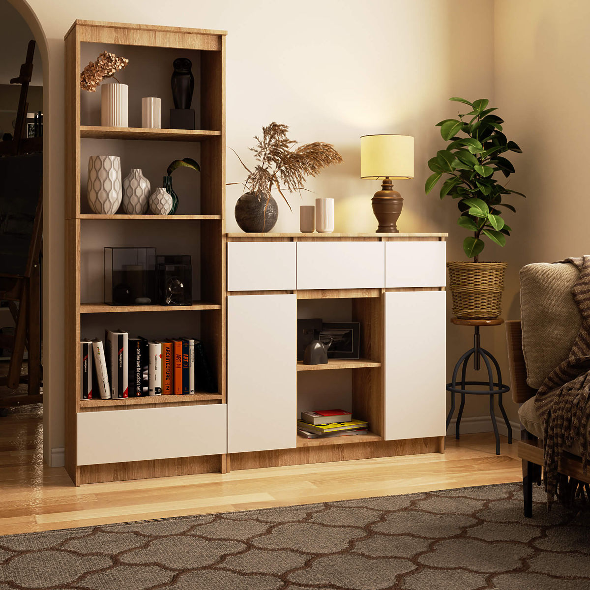 Banaby.ro » Mobilier pentru copii / Comode și dulapuri pentru copii / Comode pentru copii / COMODĂ K100 2D 3SZ 1P PK STEJAR SONOMA / ALB