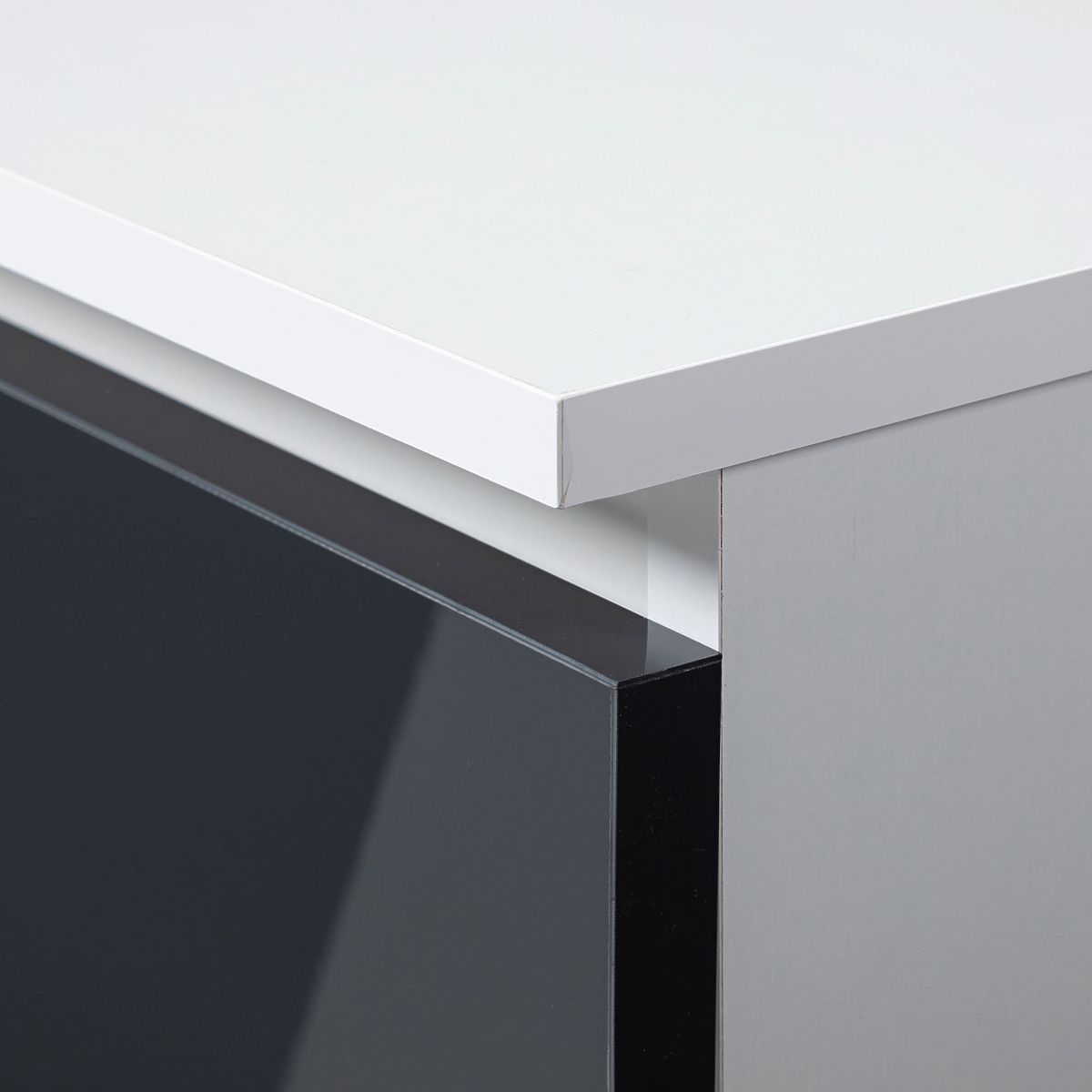 Comoda K 120 cm se remarcă prin combinația neobișnuită de culori. Fronturile mobilierului sunt realizate în grafit lucios și combinate cu un corp mat alb. Matul și luciul reprezintă o soluție foarte interesantă și, în același timp, extrem de versatilă. Datorită acestui fapt, stilul mobilierului se potrivește în diverse aranjamente, de exemplu, stilul glamour și newyorkez, care apreciază strălucirea și suprafețele lucioase, sau aranjamentele minimaliste și moderne.