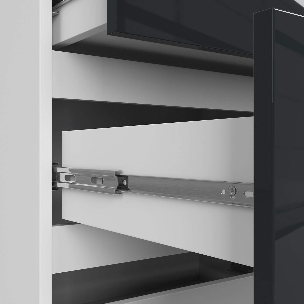 - Sertarele se mișcă pe ghidaje metalice cu bile