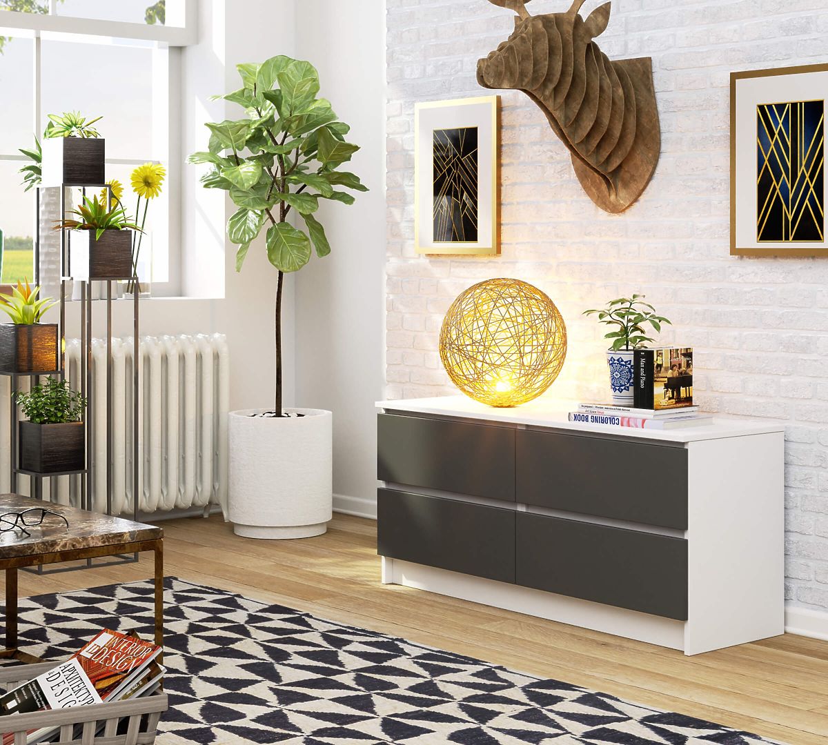 COMODĂ K120 4SZ CLP PK ALB / GRI