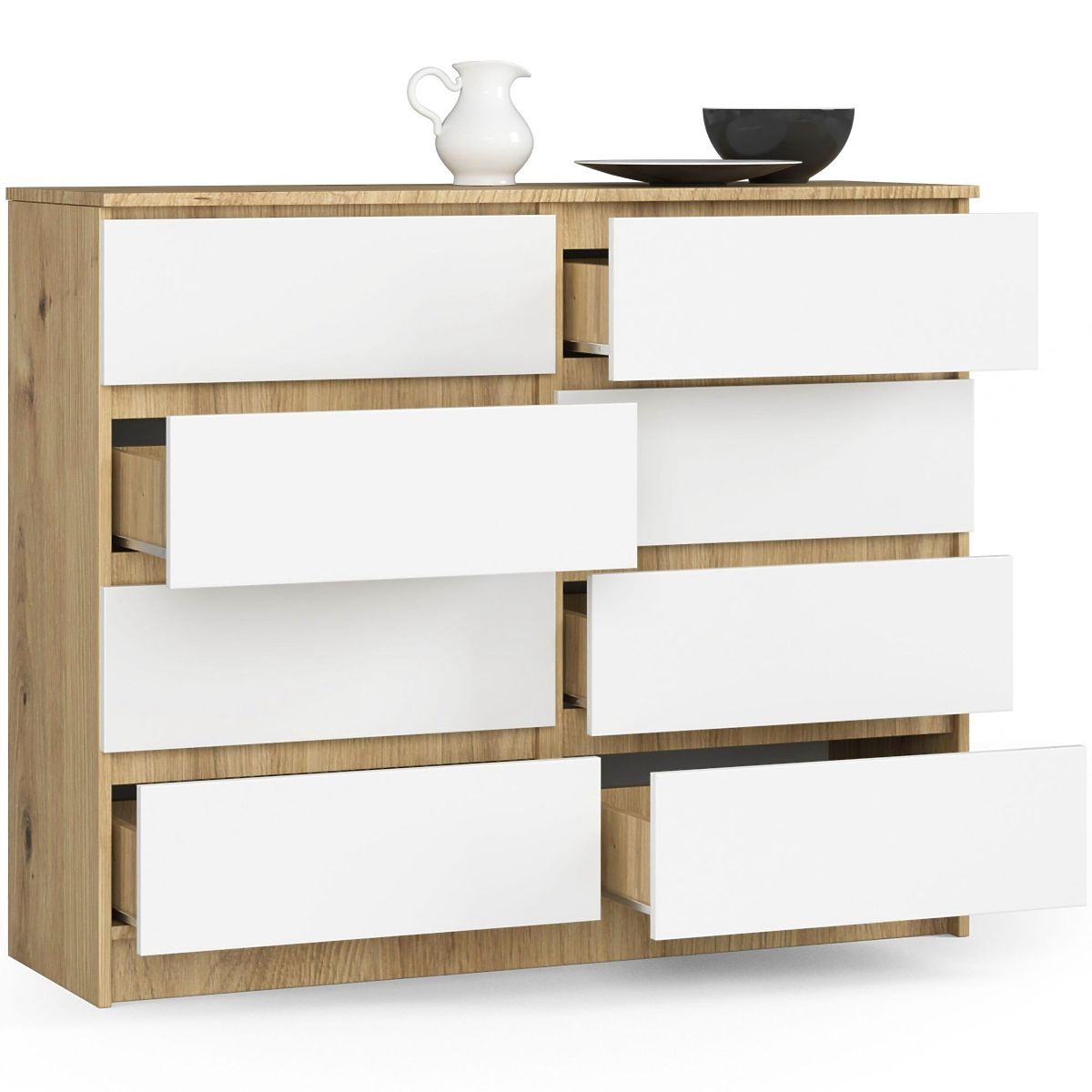 Banaby.ro » Mobilier pentru copii / Comode și dulapuri pentru copii / Comode pentru copii / COMODĂ K120 8SZ CLP PK STEJAR ARTISAN / ALB