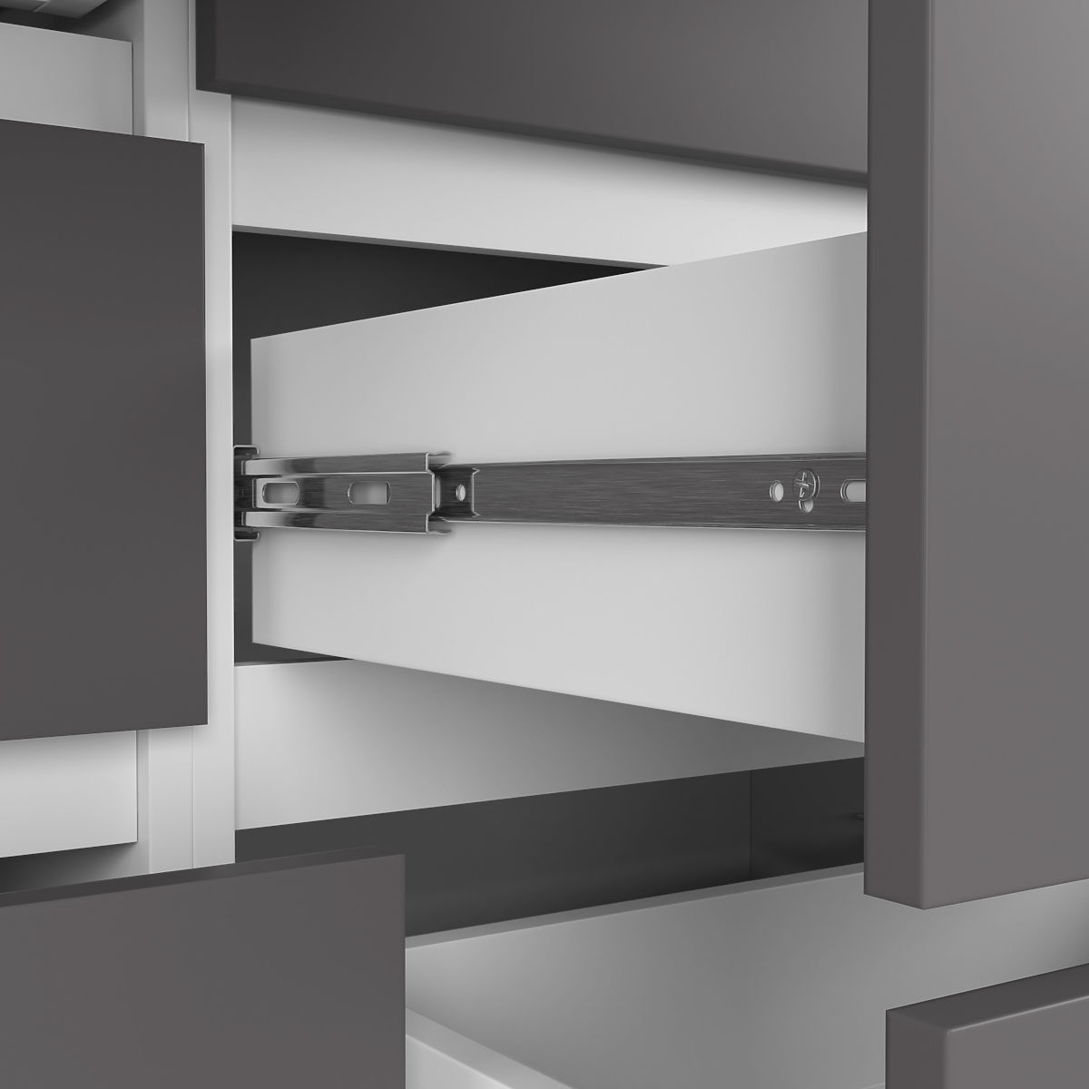 - Sertarele se mișcă pe ghidaje metalice cu bile