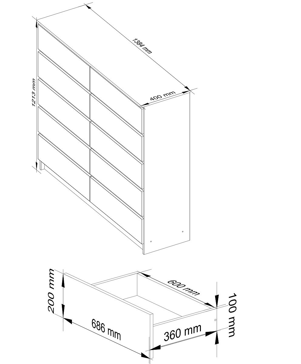 Comodă albă în stil minimalist, ideală atât pentru interioare moderne, cât și pentru spații mai mici care necesită iluminare și mărire optică. Va fi un spațiu de depozitare practic - are zece sertare spațioase, care vă vor ajuta să mențineți ordinea în casă. Se potrivește perfect în sufragerie, birou sau hol îngust.