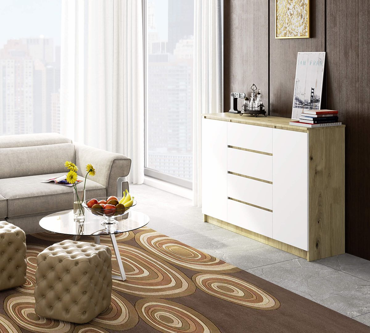 COMODĂ K140 2 UȘI 4 SERTARE