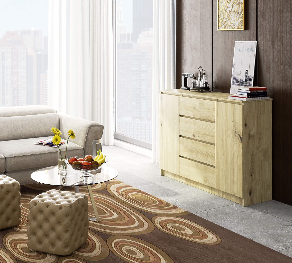 COMODĂ K140 2 UȘI 4 SERTARE