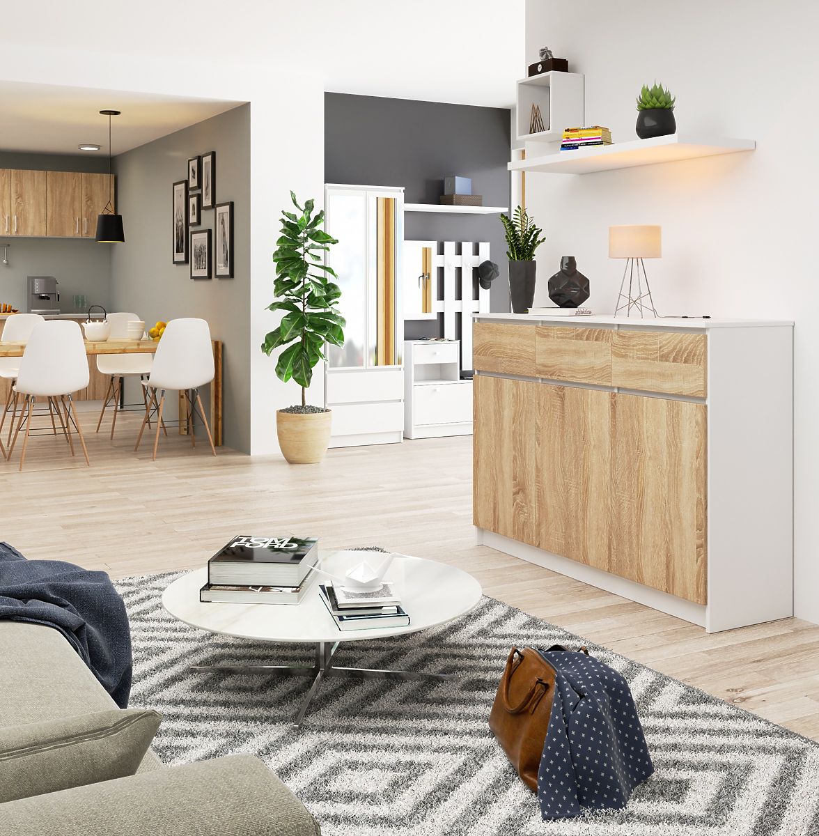 Banaby.ro » Mobilier pentru copii / Comode și dulapuri pentru copii / Comode pentru copii / COMODĂ K140 3D 3SZ CLP PK ALBĂ / SONOMA