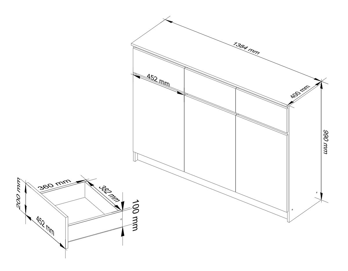 - Comodă realizată din placă laminată de înaltă calitate de 16mm rezistentă la abraziune. Placa este furnizată de producătorul Kronospan