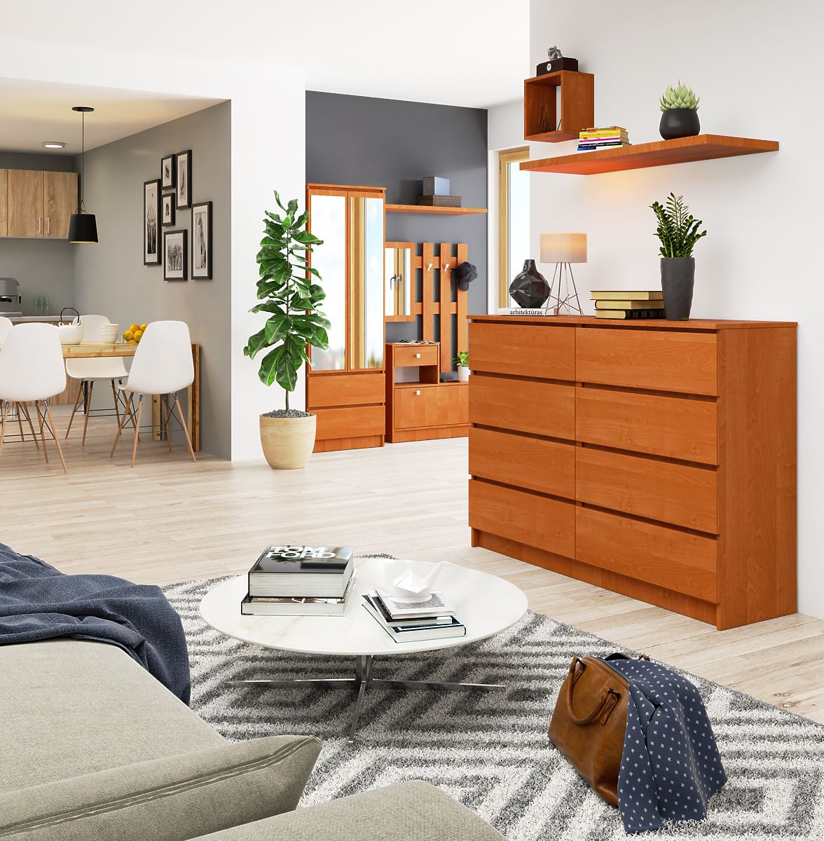 - Comodă fabricată din placă laminată rezistentă la abraziune
