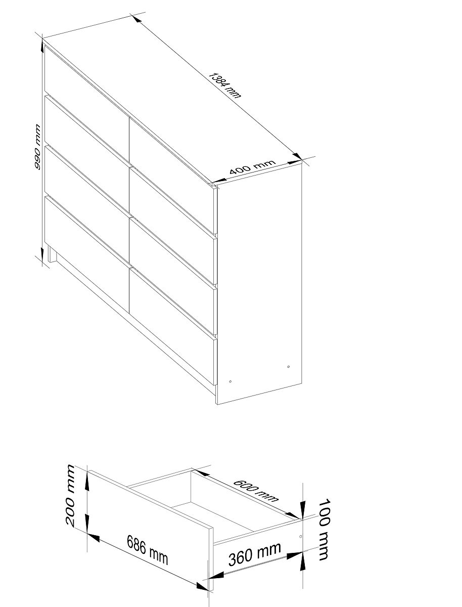 - Comodă fabricată din placă laminată rezistentă la abraziune