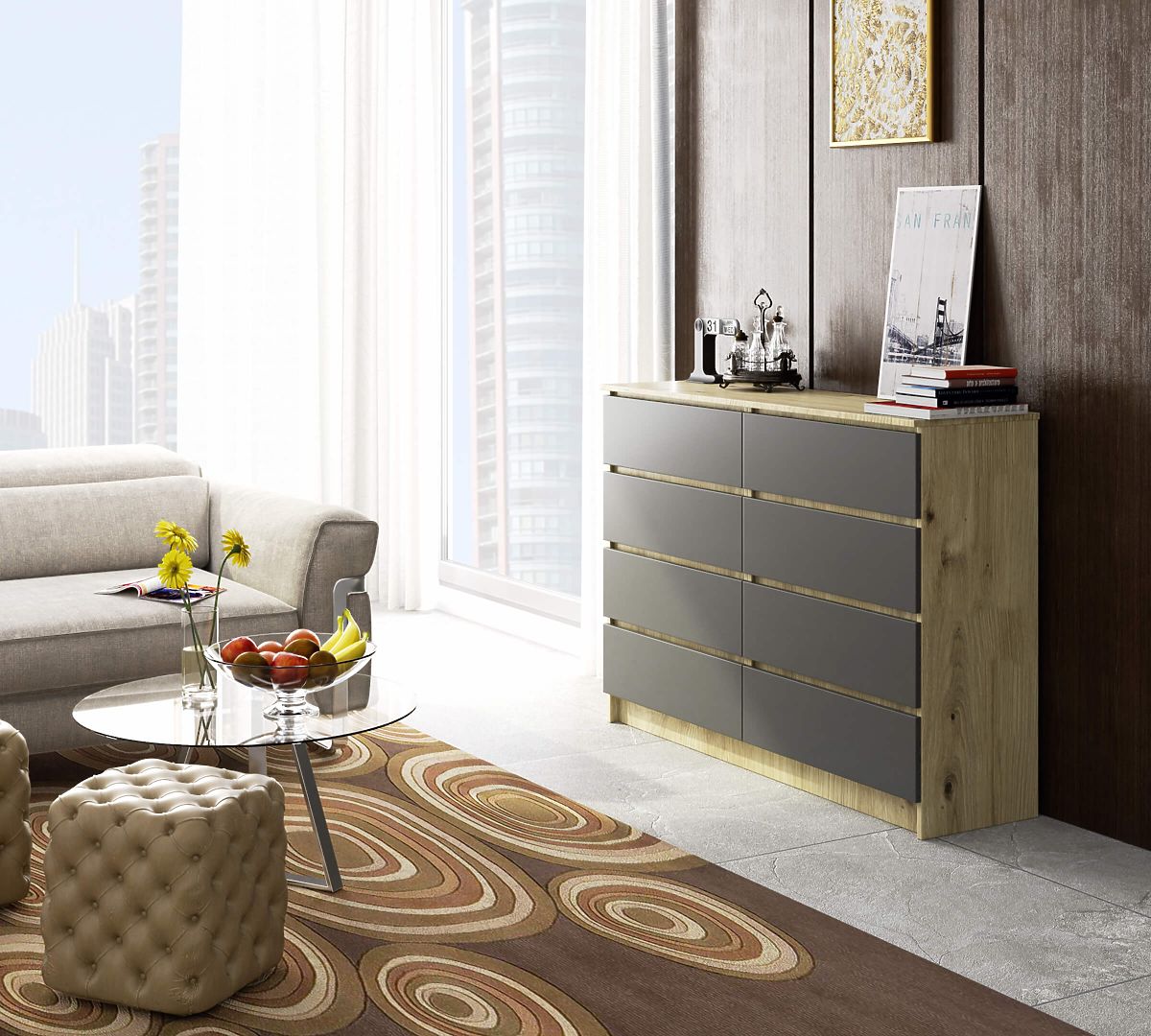 Banaby.ro » Mobilier pentru copii / Comode și dulapuri pentru copii / Comode pentru copii / COMODĂ K140 8SZ CLP STEJAR ARTISAN / GRI