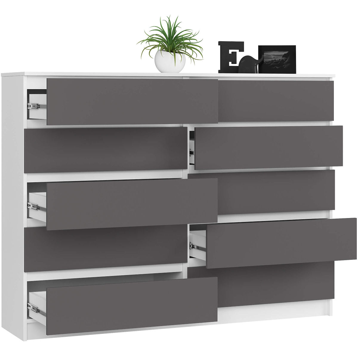 Comodă cu 10 sertare din placă laminată albă și MDF gri grafit. .. mai mult