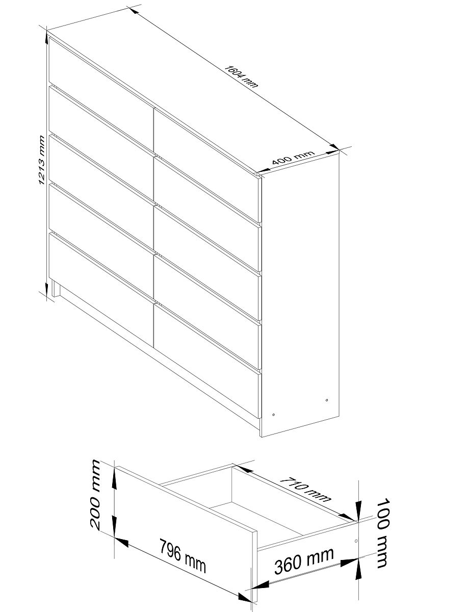 - Comodă fabricată din placă laminată rezistentă la abraziune