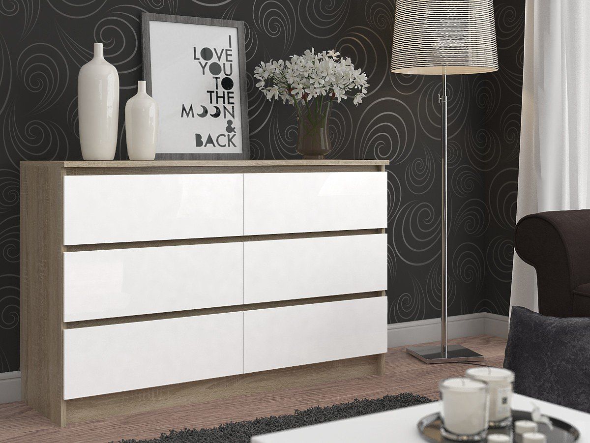 Comodă spațioasă cu 6 sertare, stejar sonoma și alb. .. mai mult