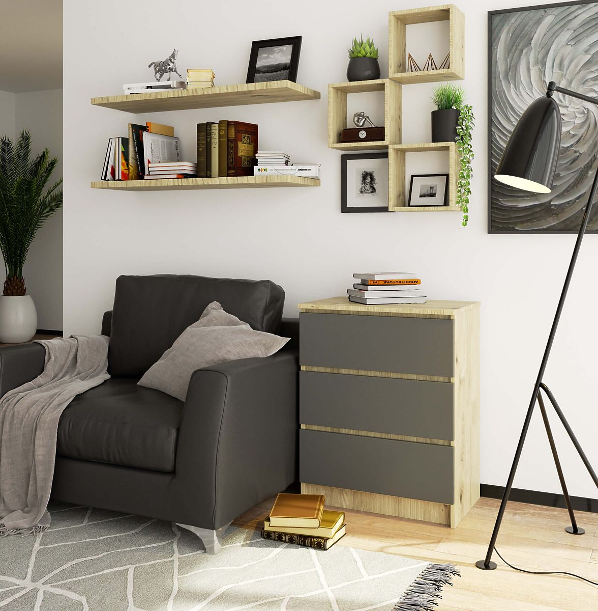 Banaby.ro » Mobilier pentru copii / Comode și dulapuri pentru copii / Comode pentru copii / COMODĂ K60 3SZ CLP PK STEJAR ARTISAN / GRI